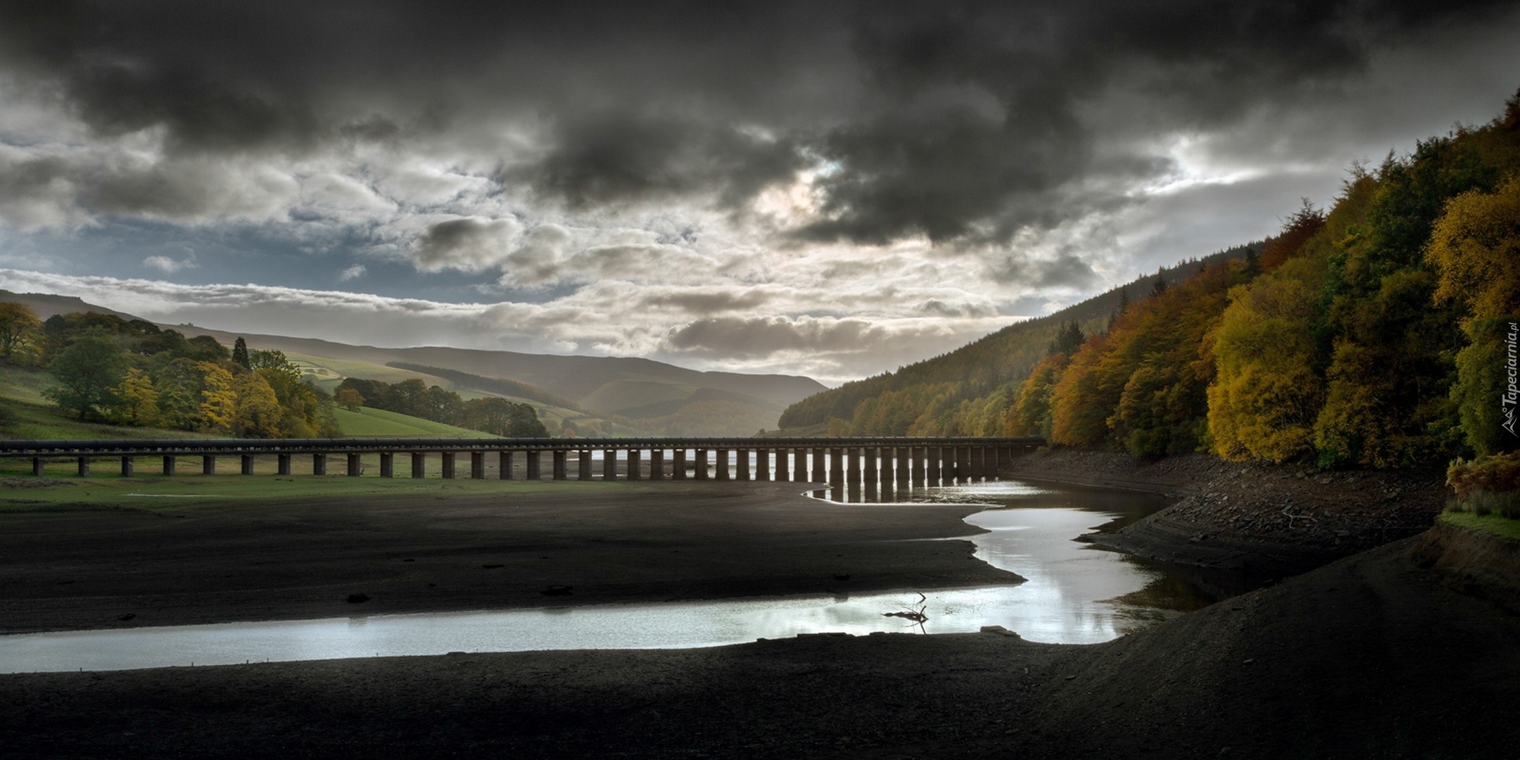 Edytor tapety: Jesień, Rzeka, Most, Wzgórza