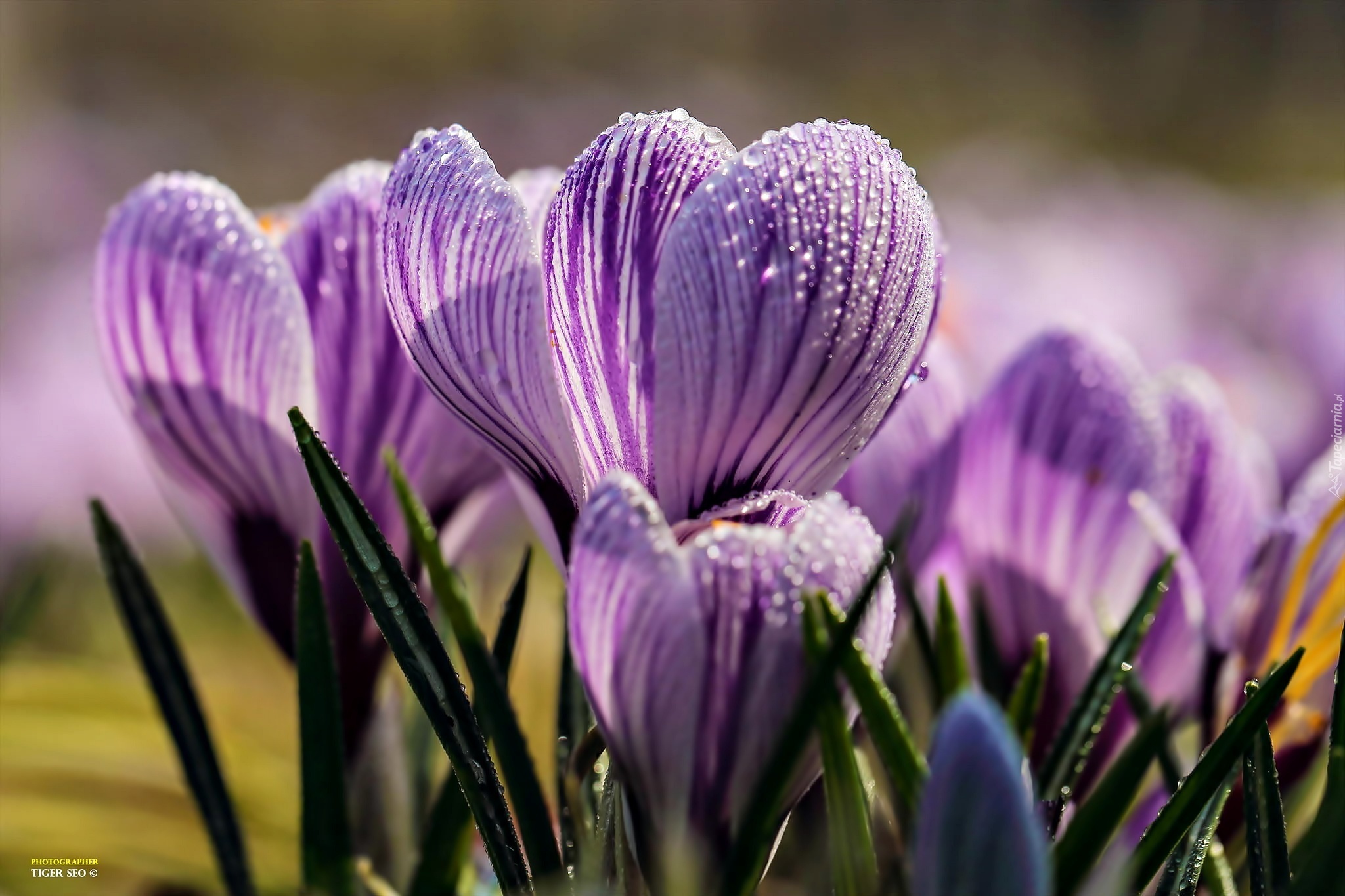 Edytor tapety: Makro, Fioletowe, Krokusy, Krople