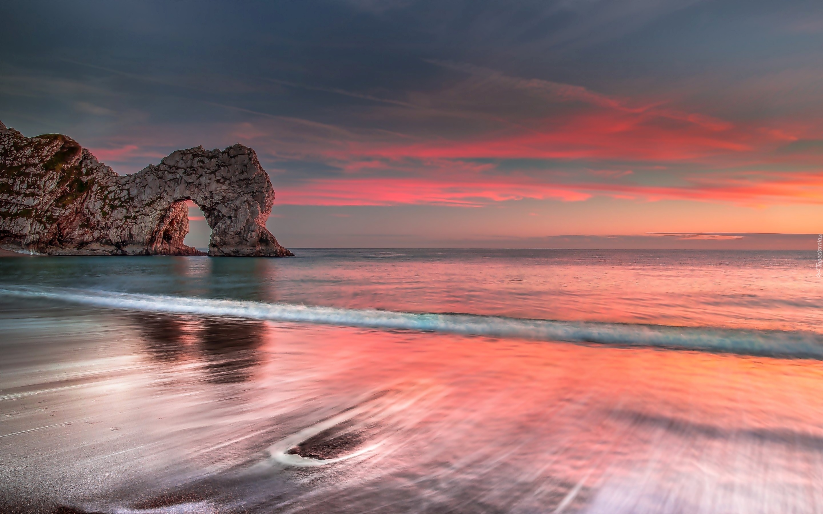 Edytor tapety: Morze, Zachód Słońca, Skała