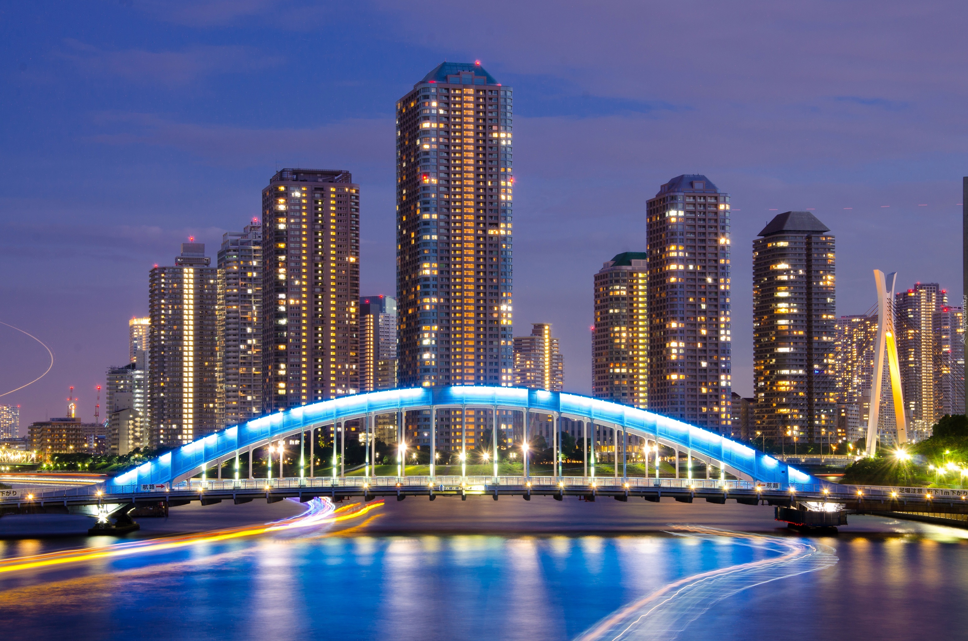 Edytor tapety: Japonia, Tokio, Wieżowce, Rzeka, Most