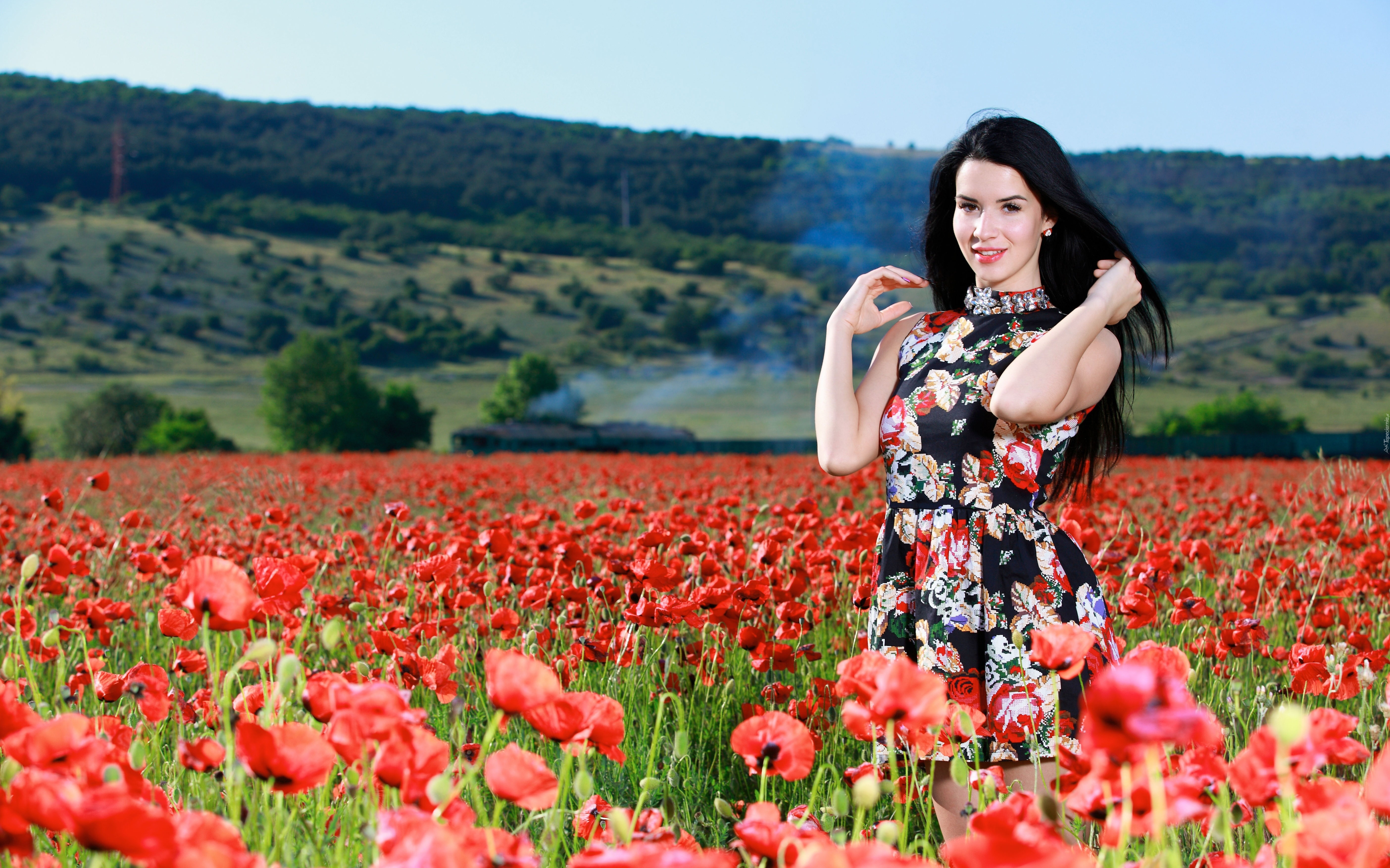 Edytor tapety: Makowe, Pole, Kobieta, Lola Marlon