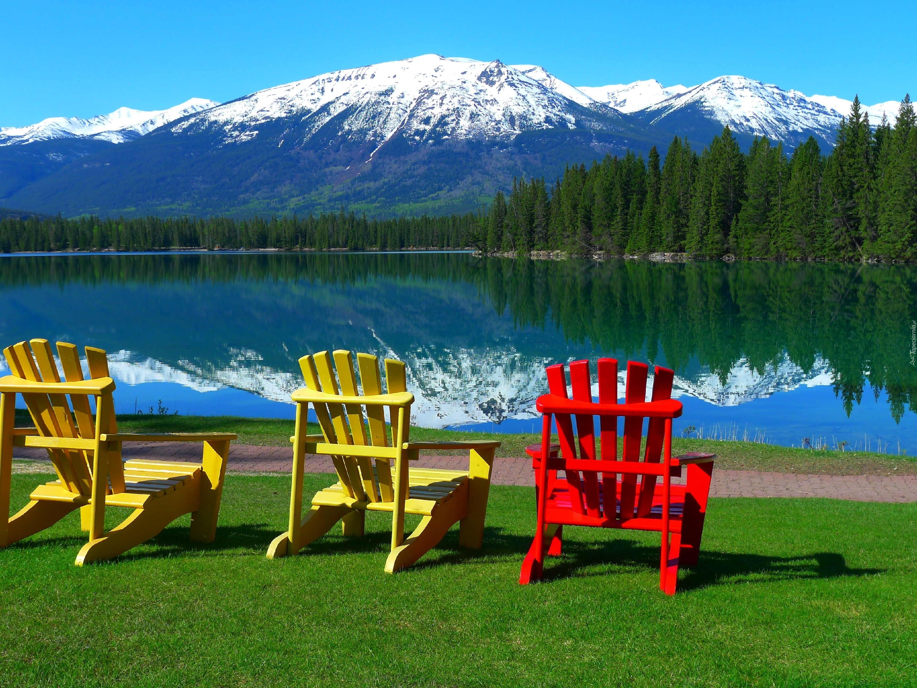 Edytor tapety: Leżaki, Jezioro, Lasy, Góry, Wakacje