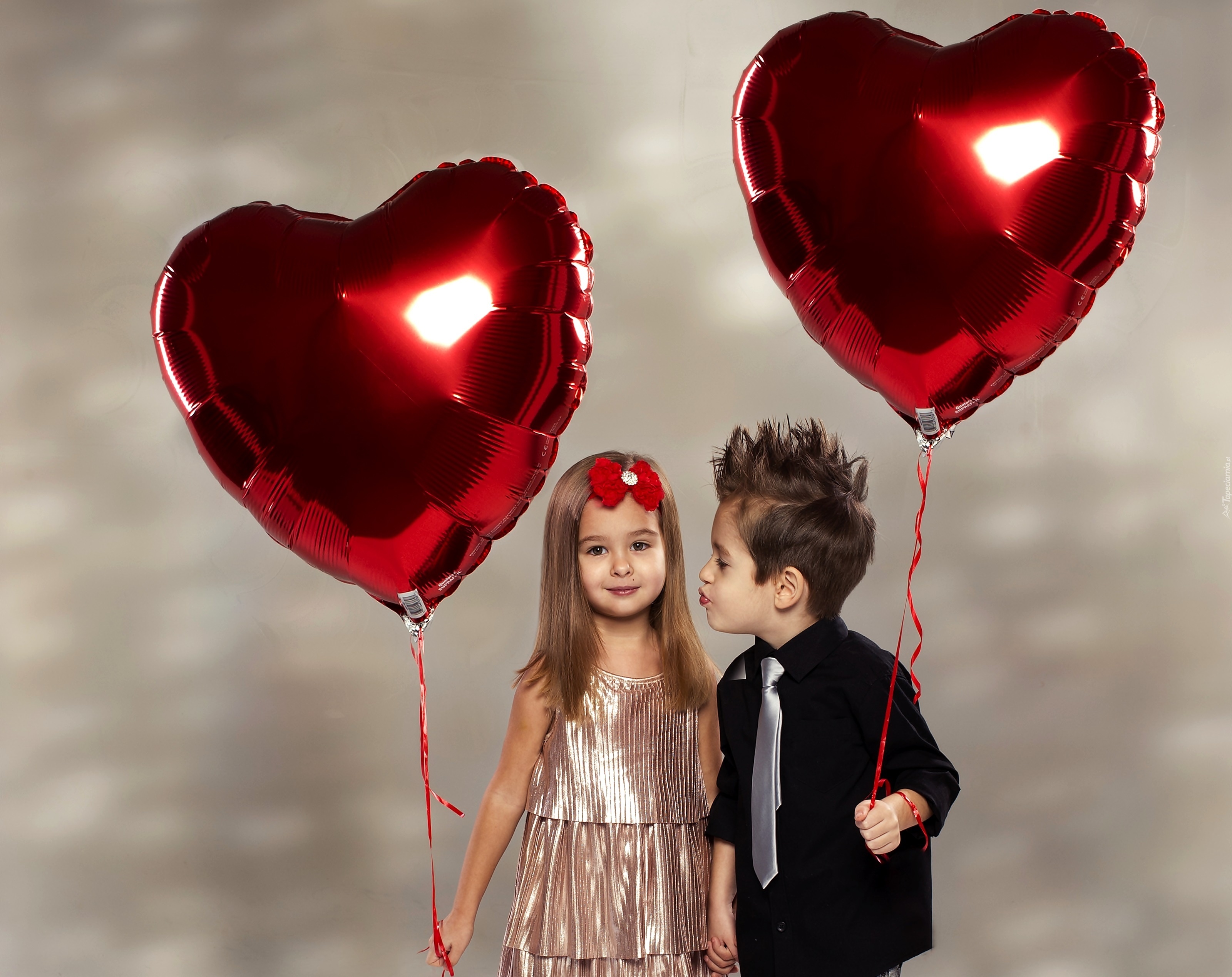 Edytor tapety: Chłopiec, Dziewczynka, Balony, Serca