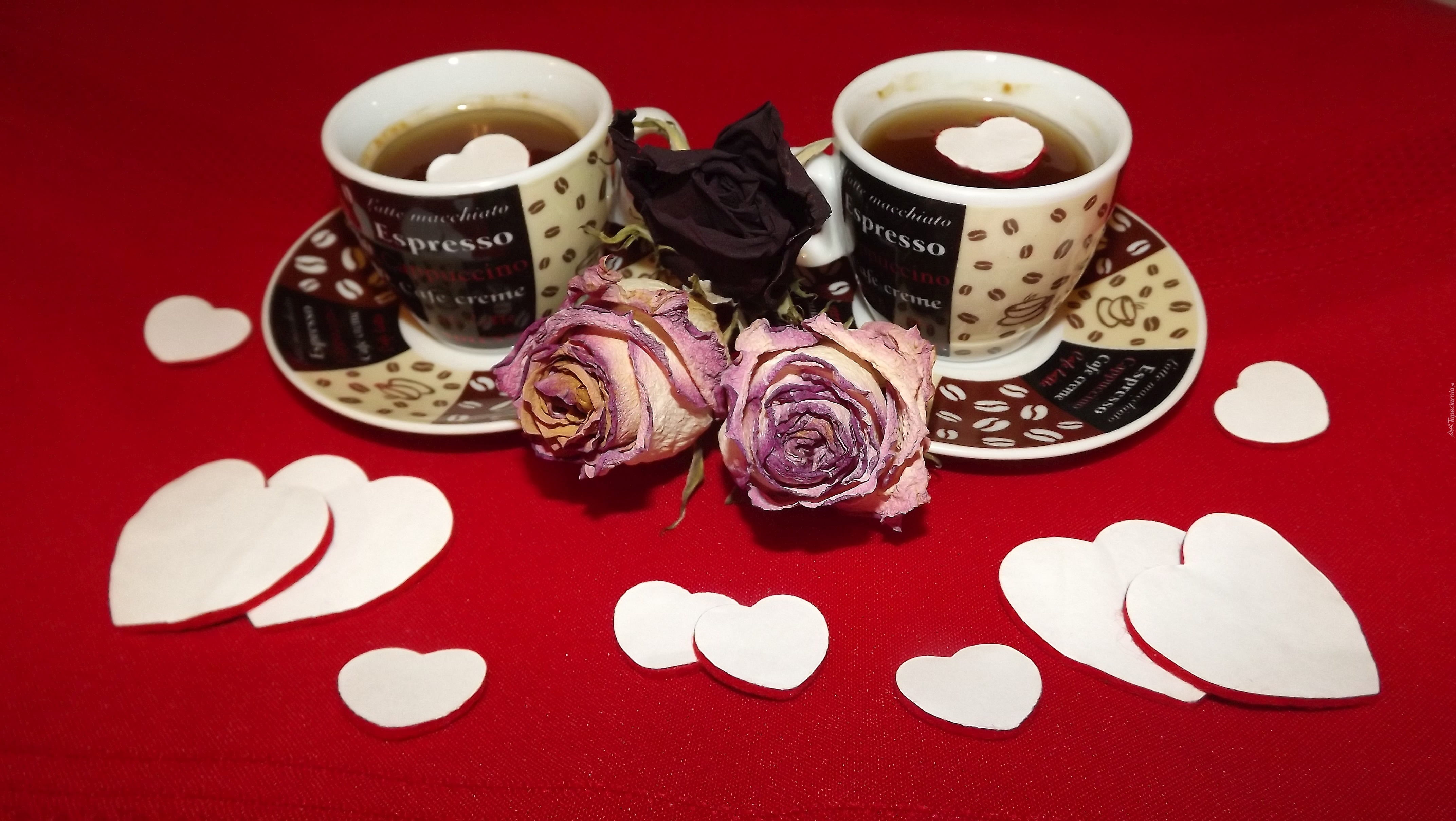 Edytor tapety: Walentynki, Serduszka, Róże, Filiżanki