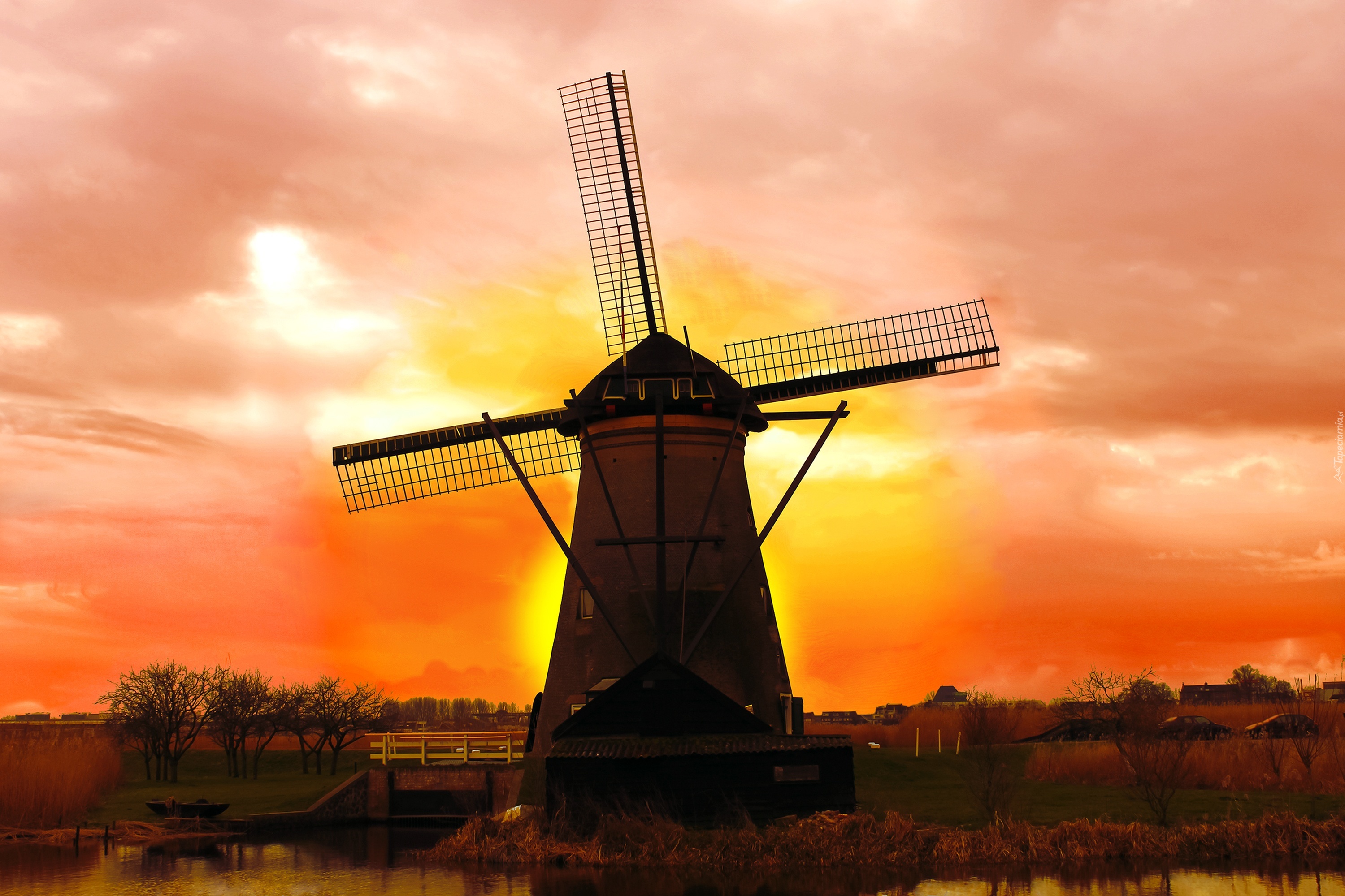 Edytor tapety: Wiatrak, Wschód Słońca, Holandia
