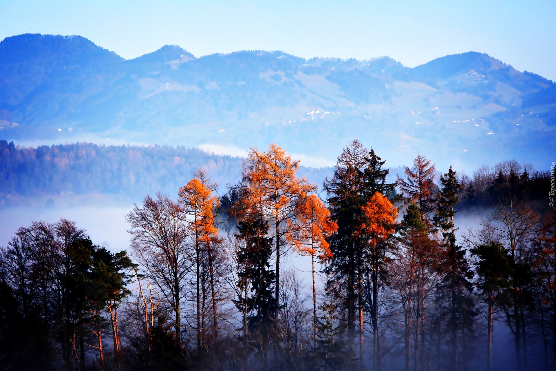 Edytor tapety: Góry, Mgła, Jesień, Drzewa