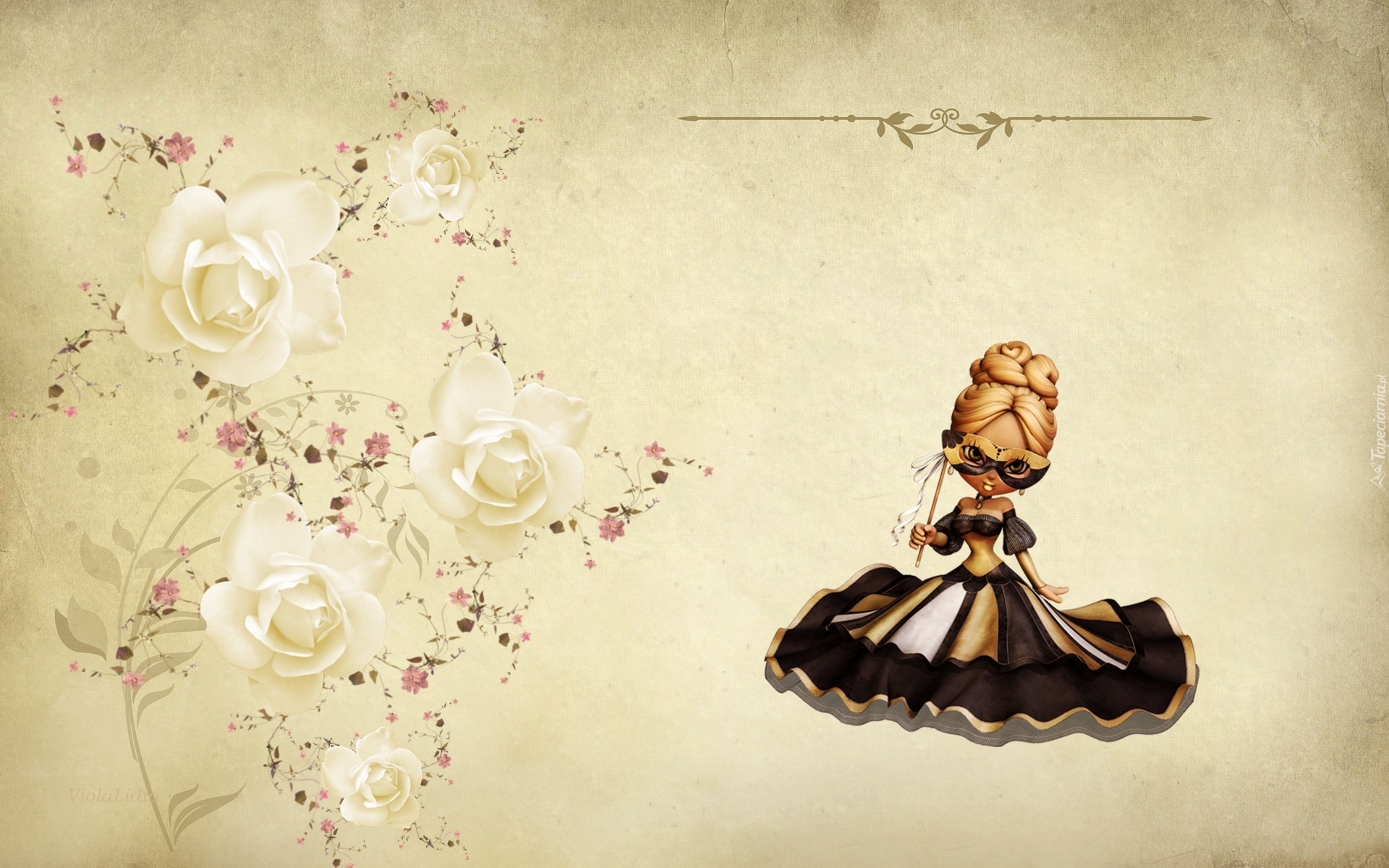Edytor tapety: Grafika 2D, Lalka, Maska, Kwiaty, Róże