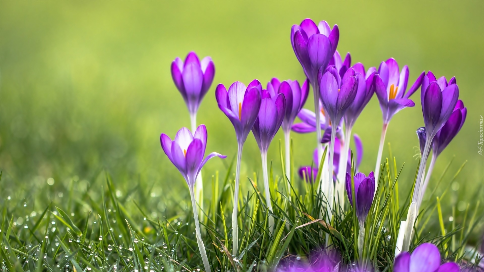Edytor tapety: Fioletowe, Krokusy, Łąka, Wiosna