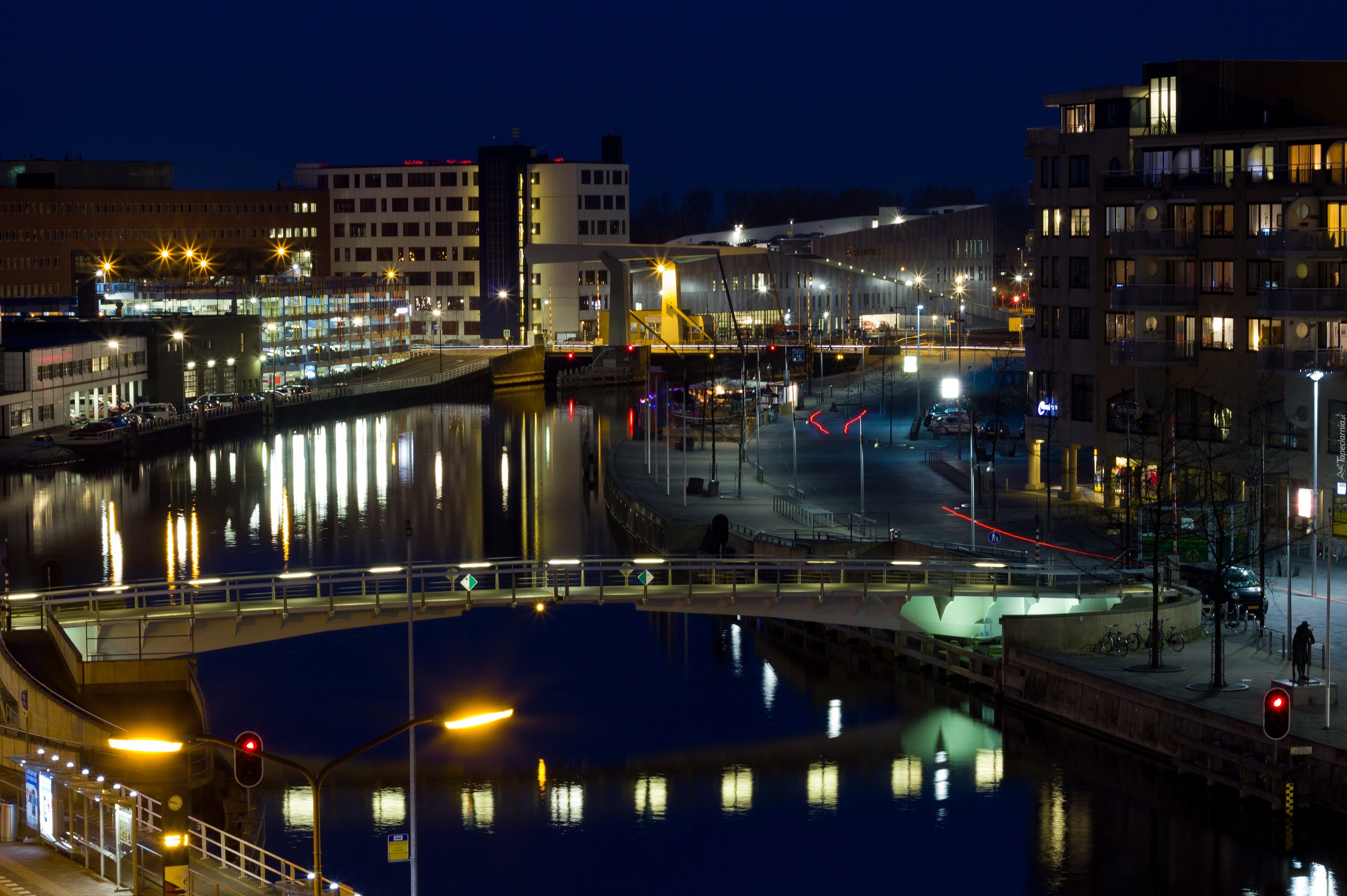 Edytor tapety: Alkmaar, Holandia, Miasto, Noc, Kanał
