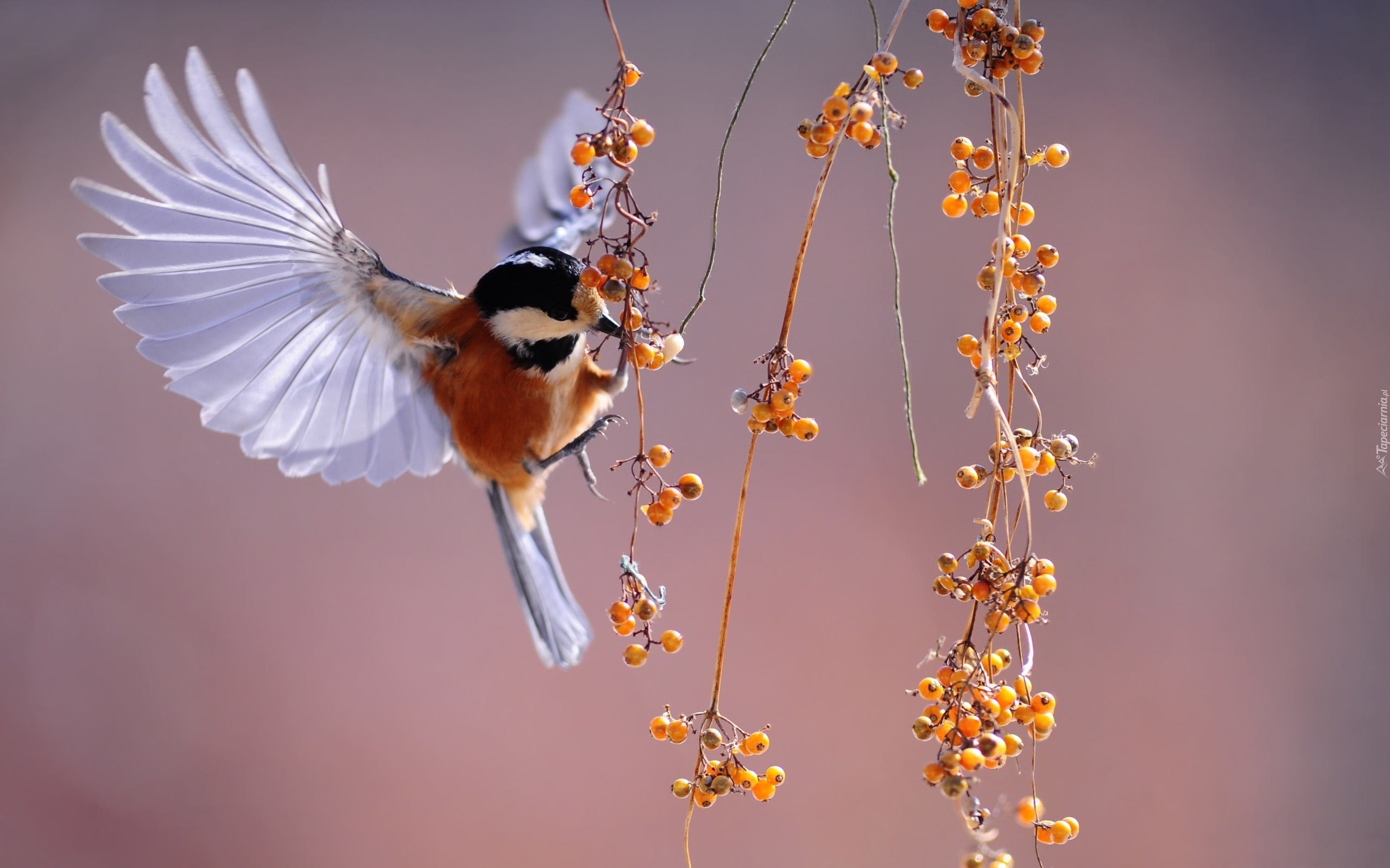 Edytor tapety: Ptak, Sikora, Sikorka, Rozpostarte, Skrzydła, Roślina
