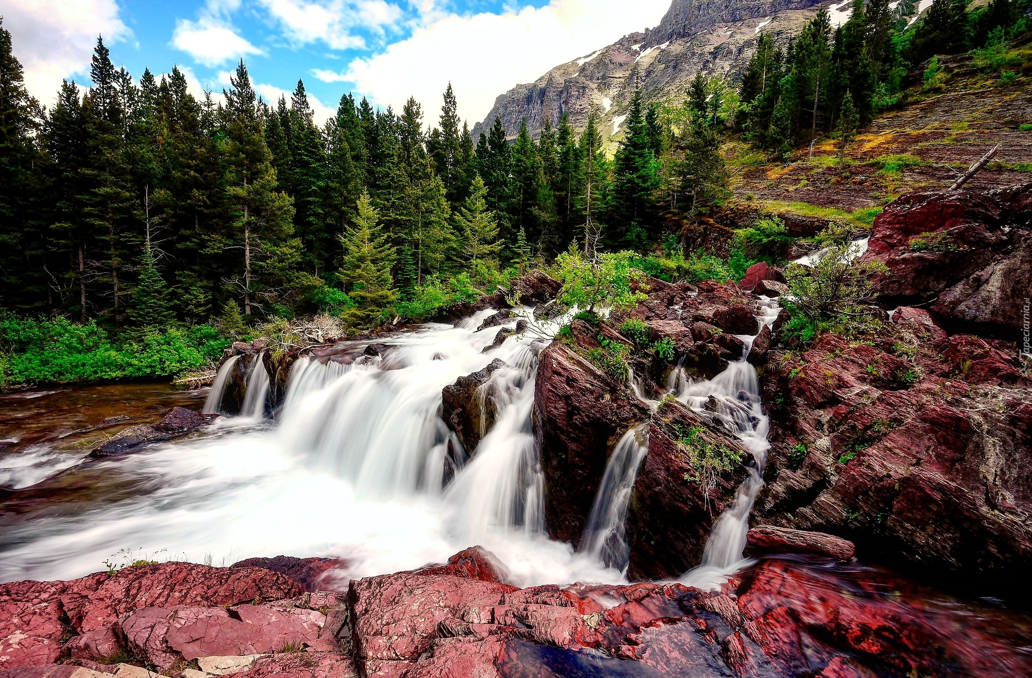 Edytor tapety: Góry, Las, Skały, Wodospad, Kaskada