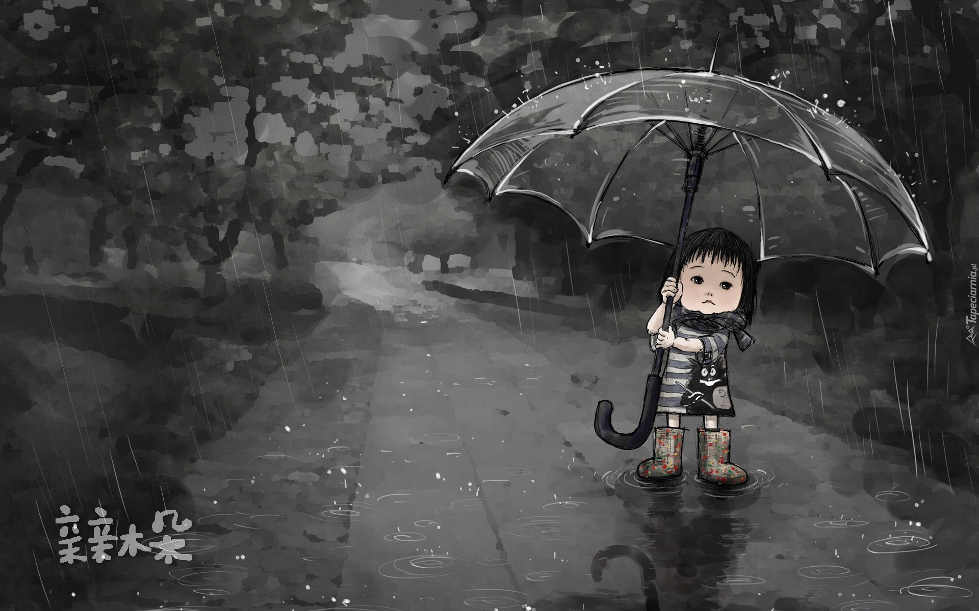 Edytor tapety: Deszcz, Dziewczynka, Parasol