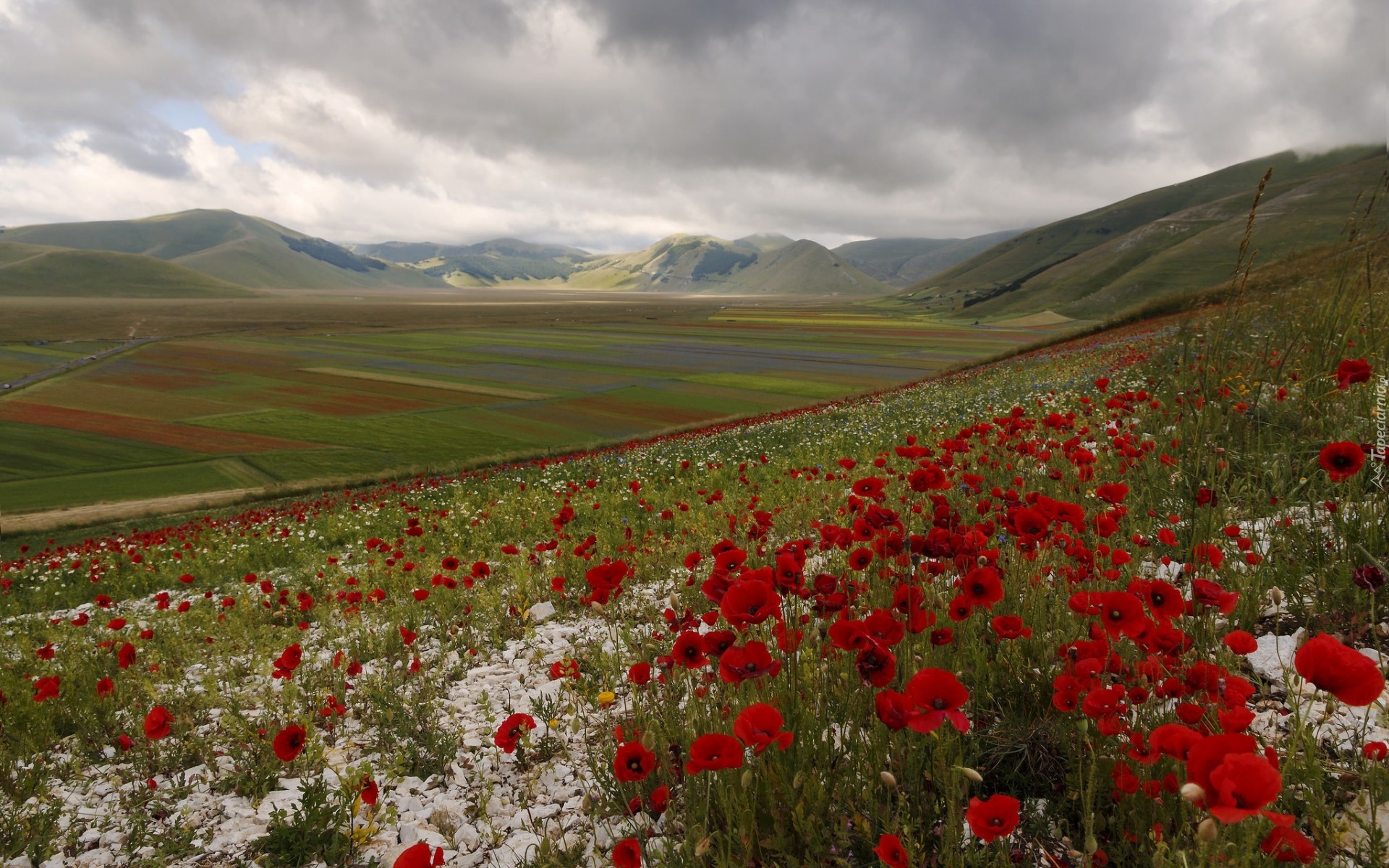 Edytor tapety: Góry, Kwiaty, Trawa