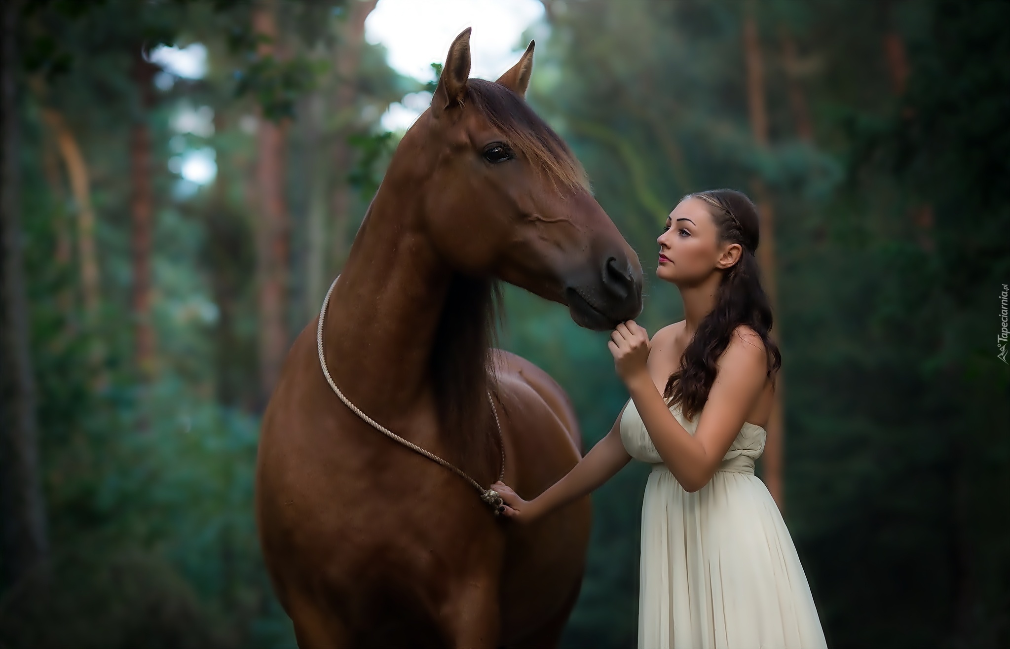 Edytor tapety: Kobieta, Koń, Las