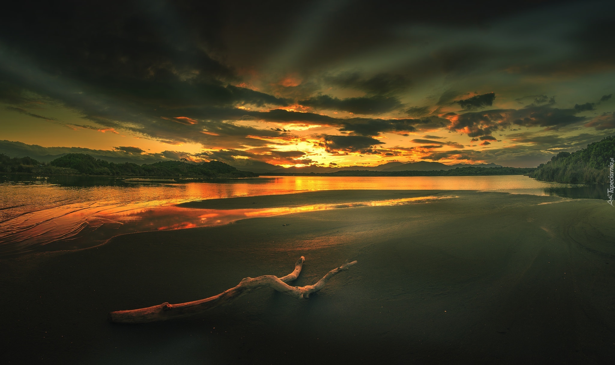 Edytor tapety: Morze, Zachód, Słońca, Konar, Drzewa