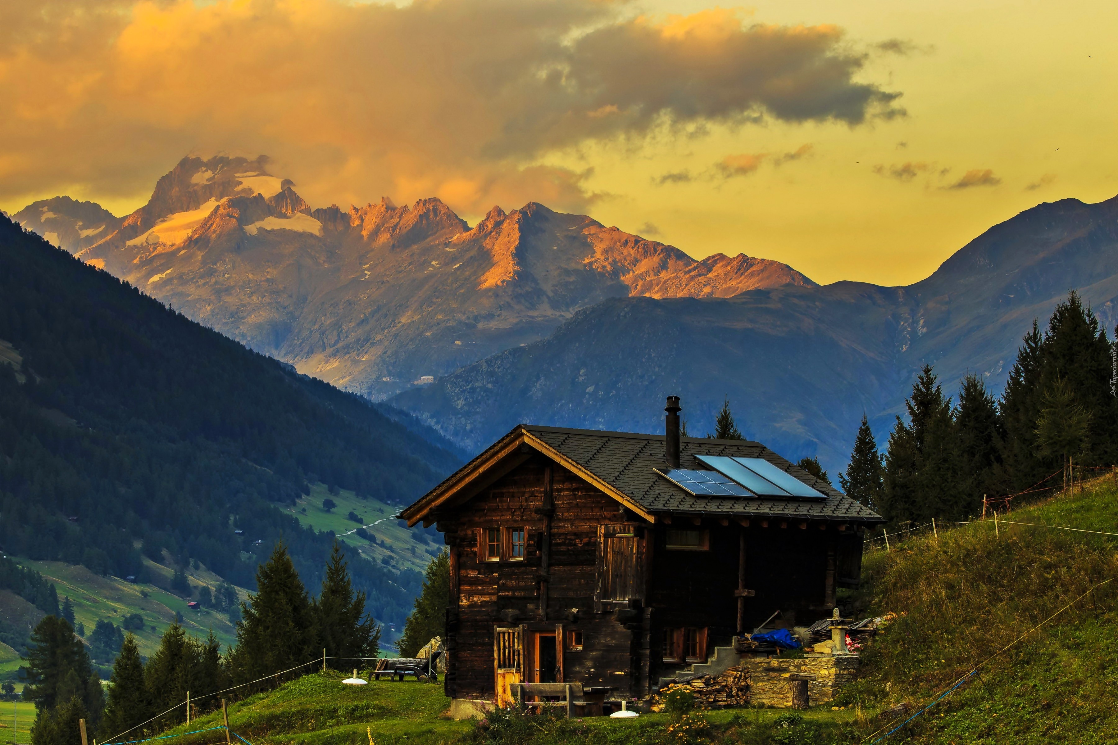 Edytor tapety: Góry, Dolina, Chmury, Zachód, Słońca, Dom