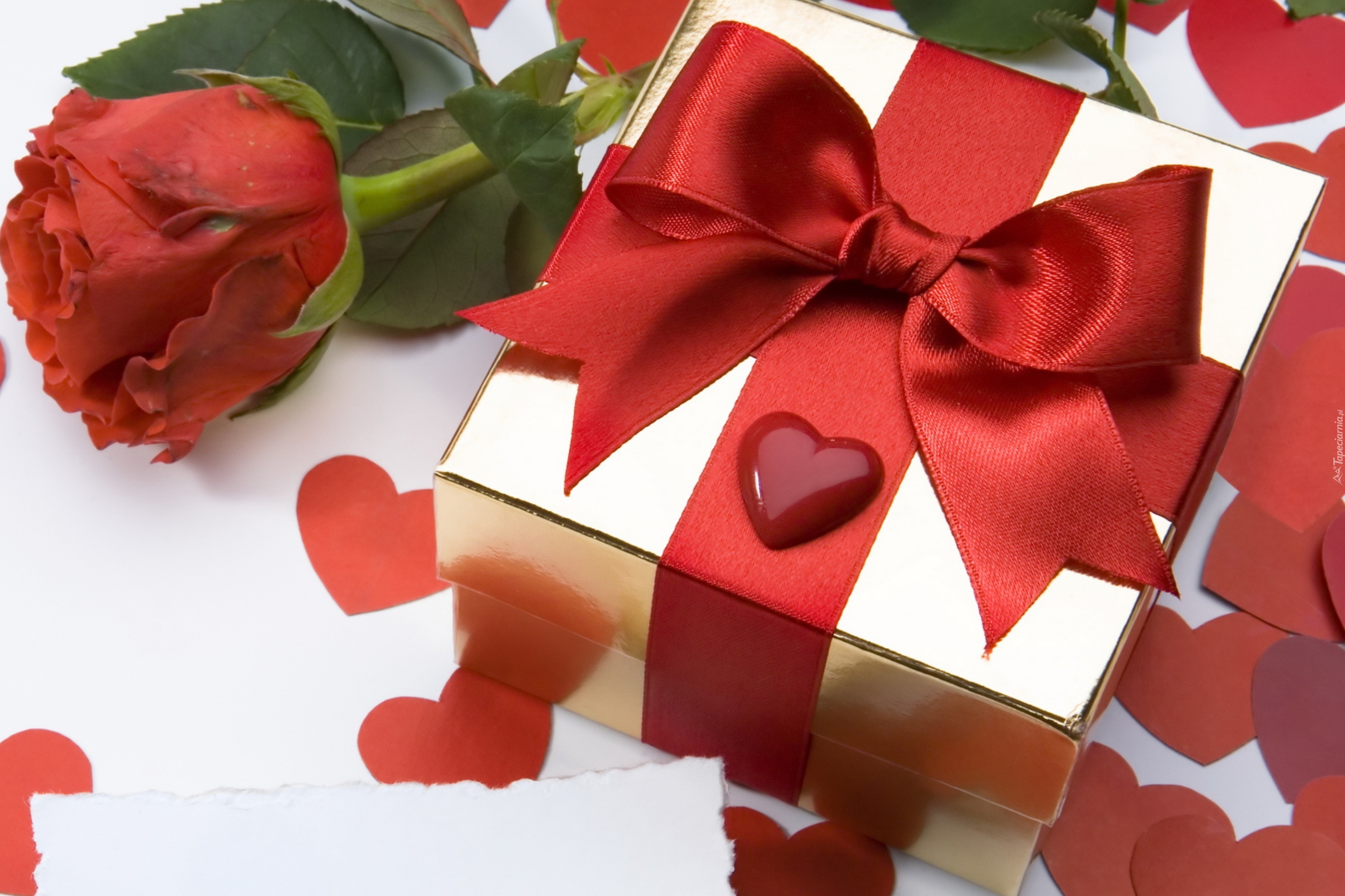 Edytor tapety: Czerwona, Róża, Prezent, Wstążka, Serca