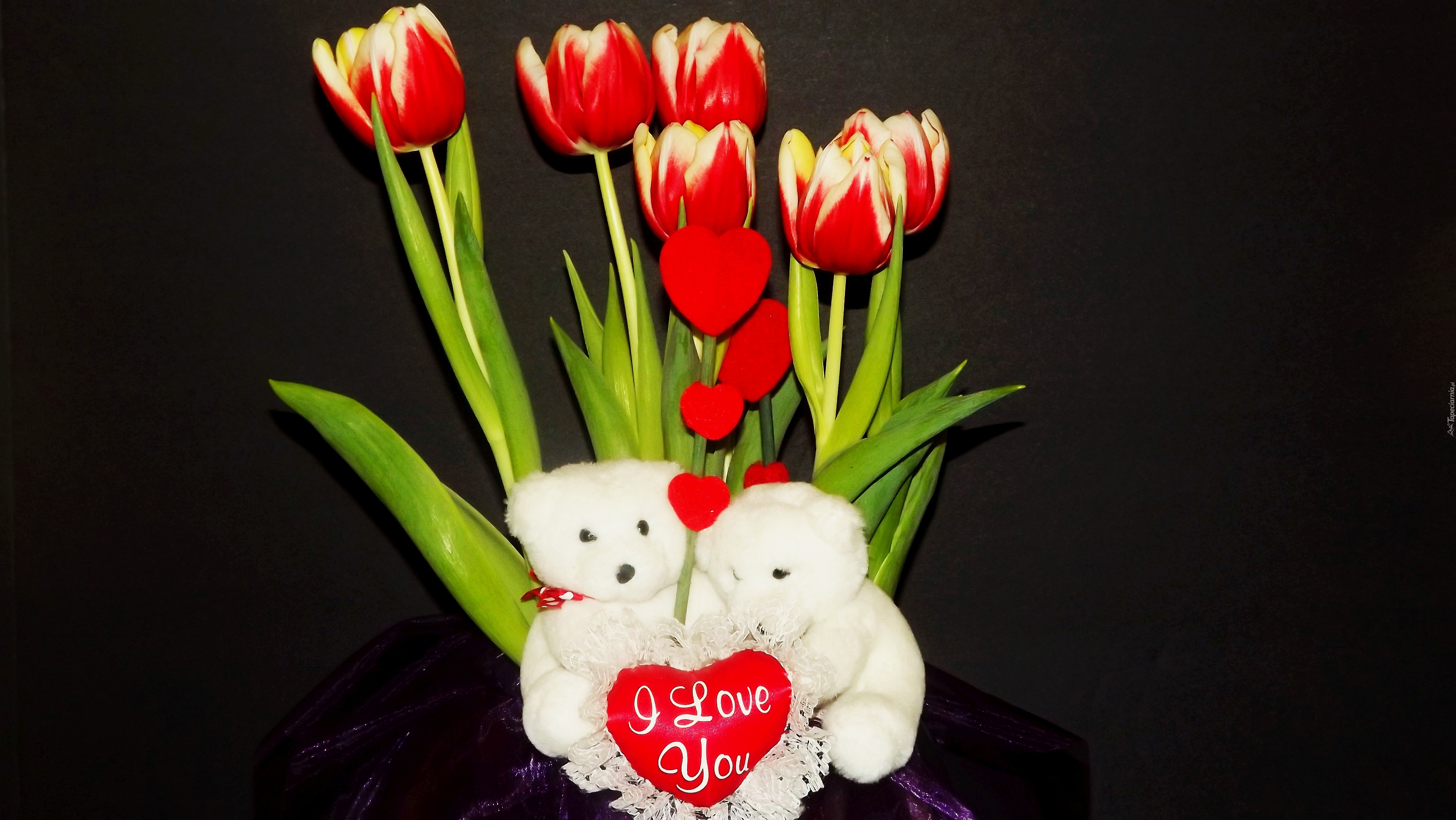 Edytor tapety: Walentynki, Misie, Tulipany