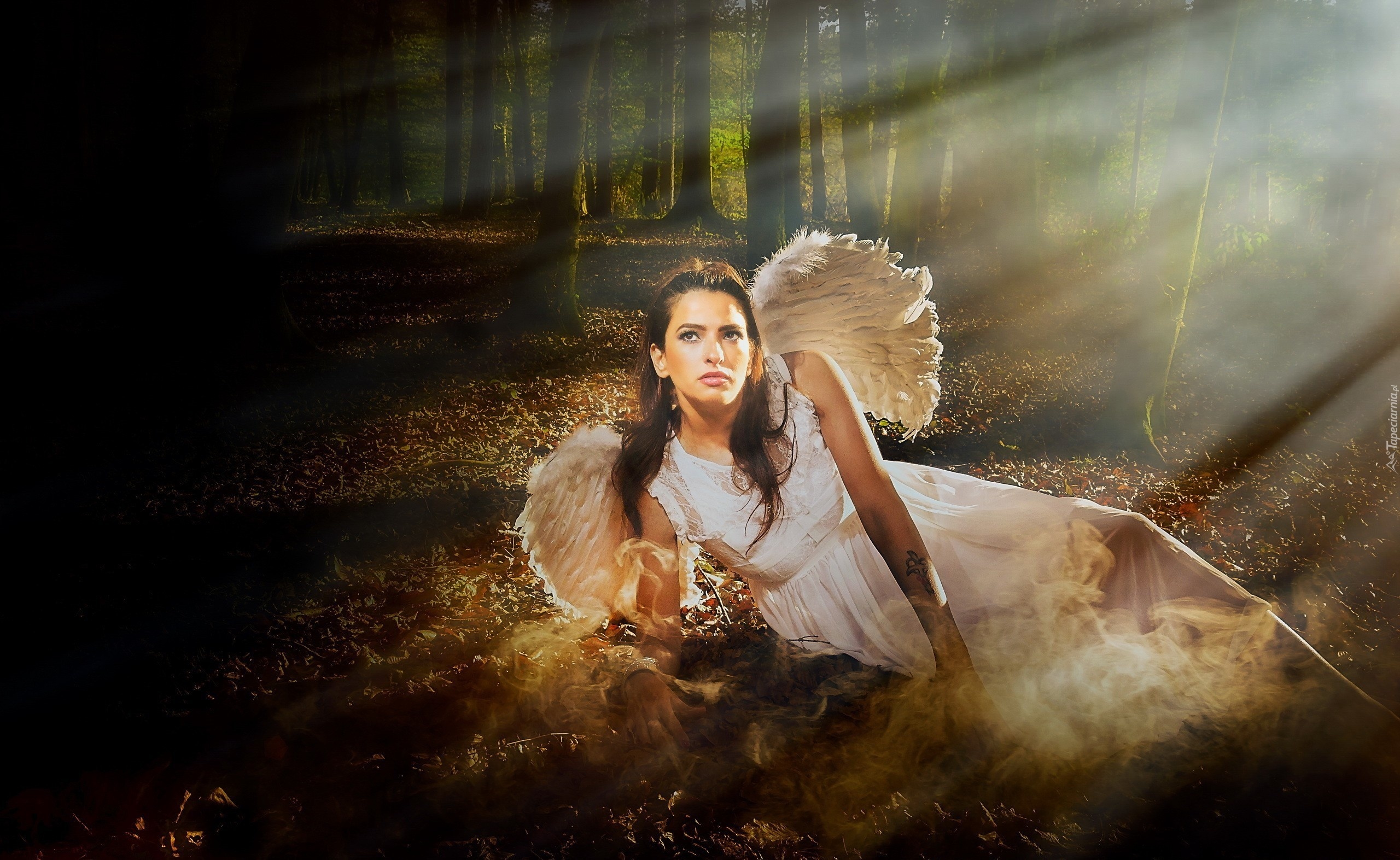 Edytor tapety: Fantasy, Las, Promienie, Słońca, Kobieta, Anioł