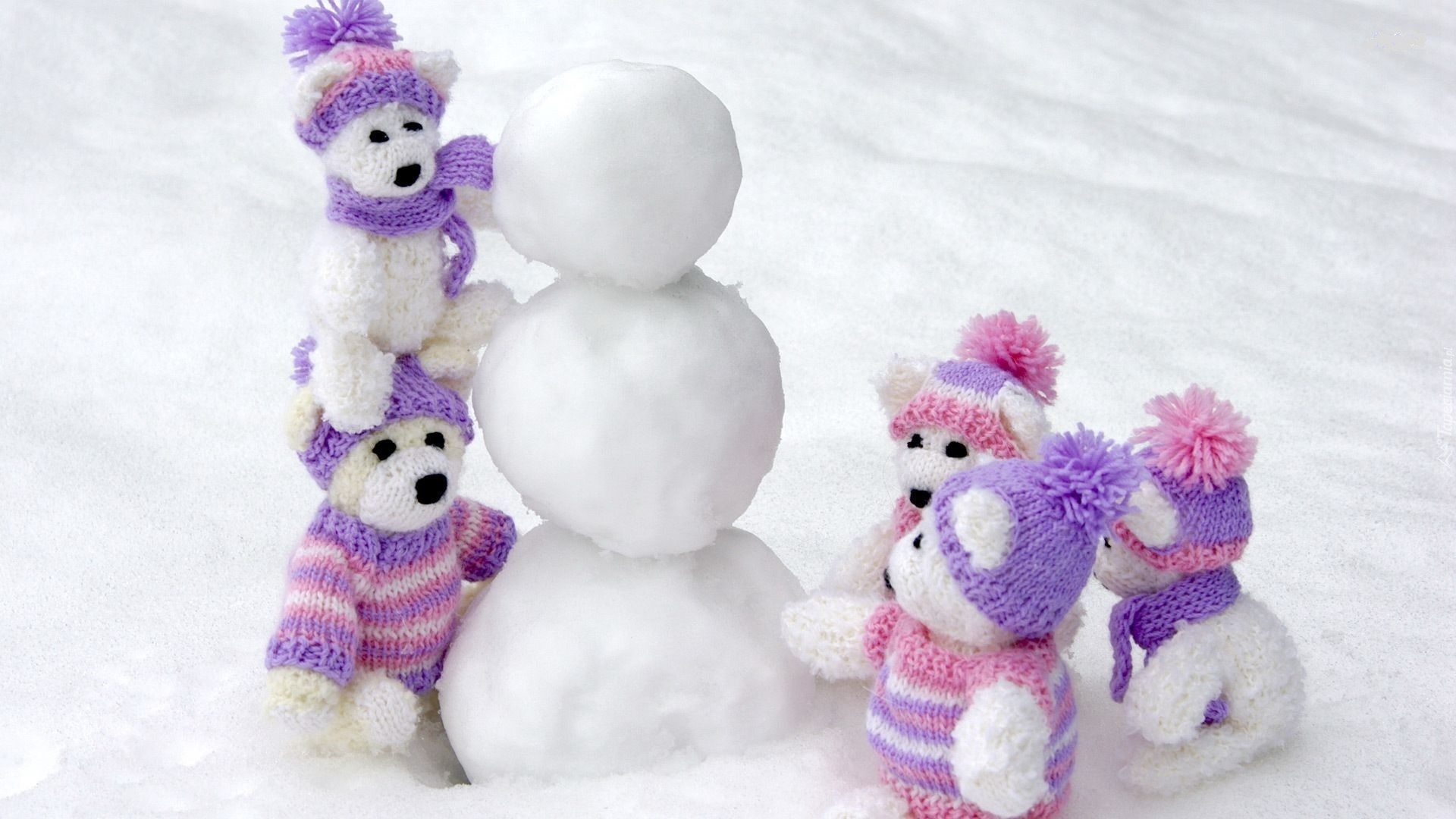 Edytor tapety: Zima, Misie, Ubranka, Dzianina, Zabawa, Bałwan