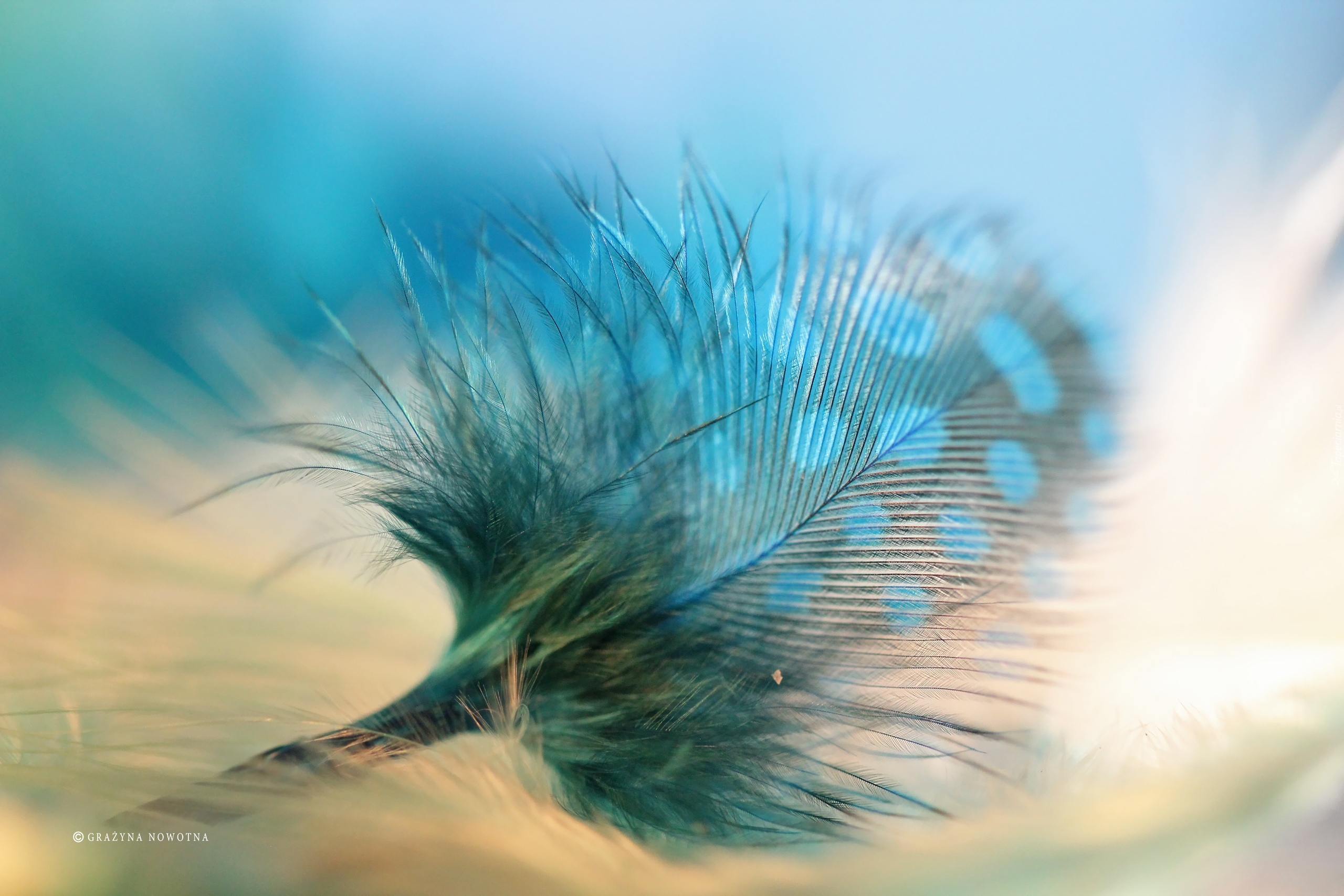 Edytor tapety: Niebieskie, Piórko, Makro, Perliczka