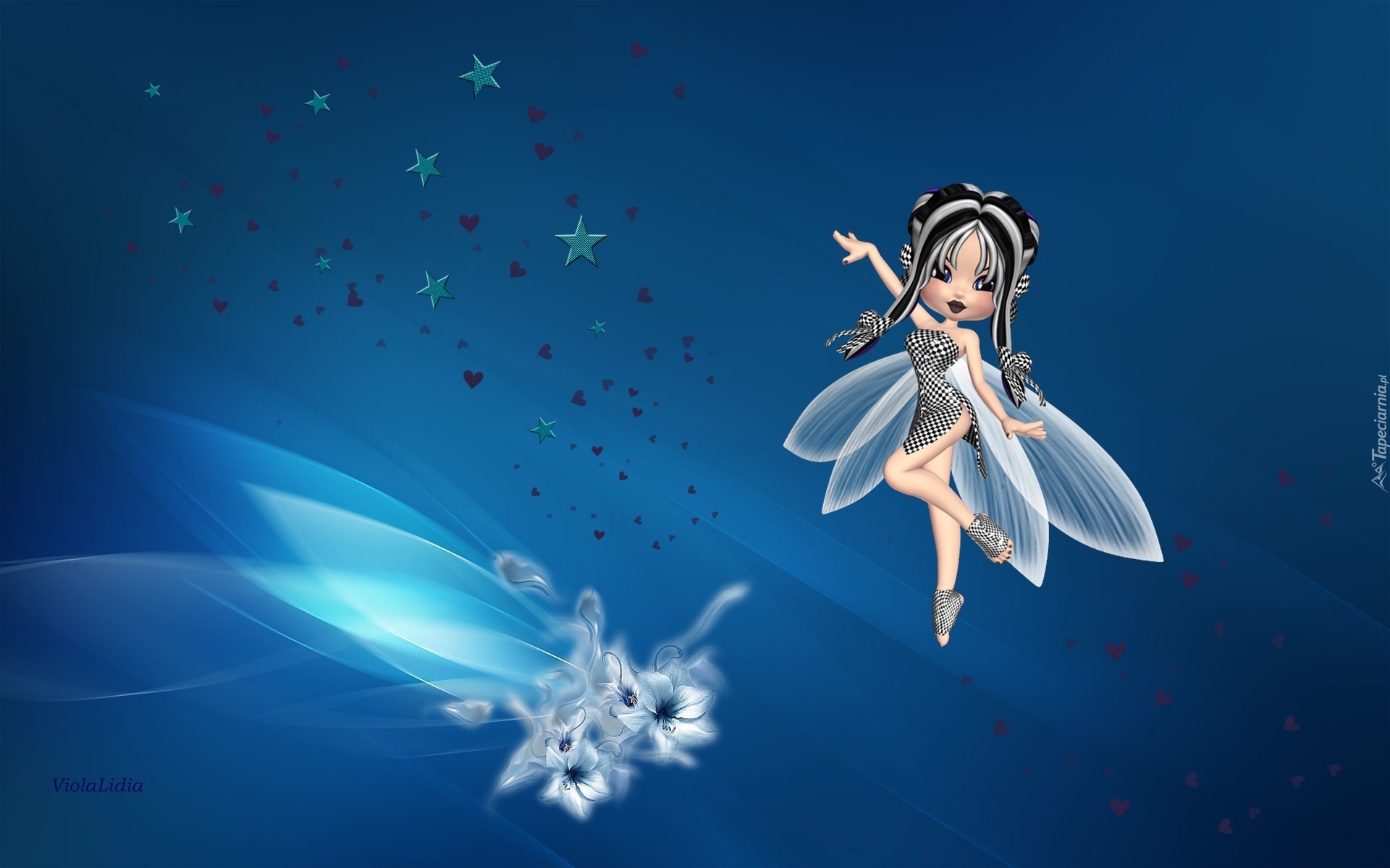 Edytor tapety: Grafika, Elf, Laleczka, Kwiaty, Gwiazdki