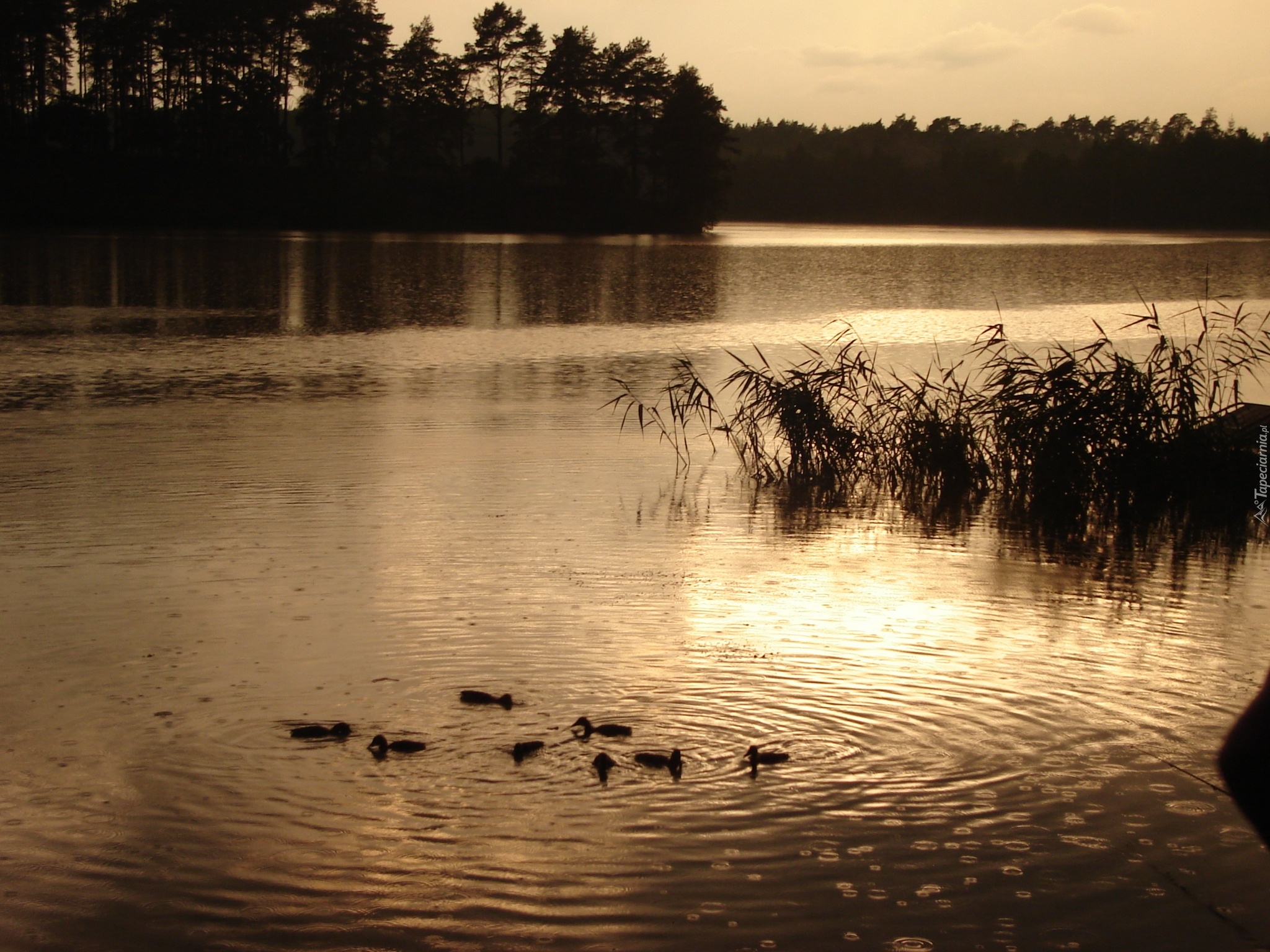 Edytor tapety: Rzeka, Zachód Słońca, Kaczuszki