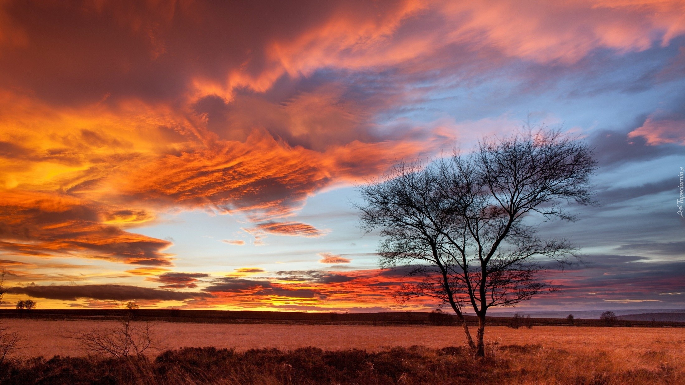 Edytor tapety: Jesień, Zachód, Słońca, Chmury, Pola, Drzewa