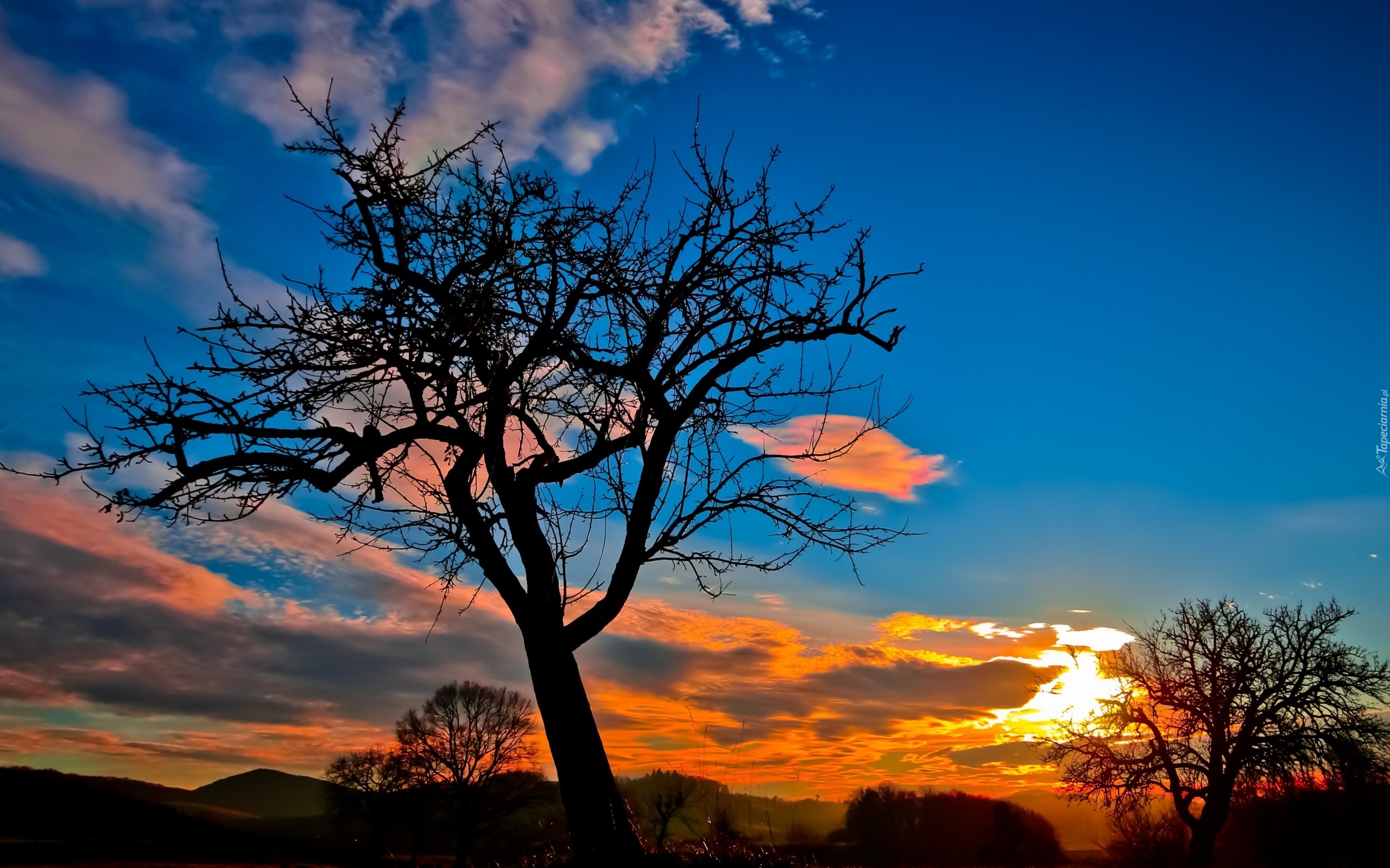 Edytor tapety: Drzewa, Góry, Zachód, Słońca, Jesień