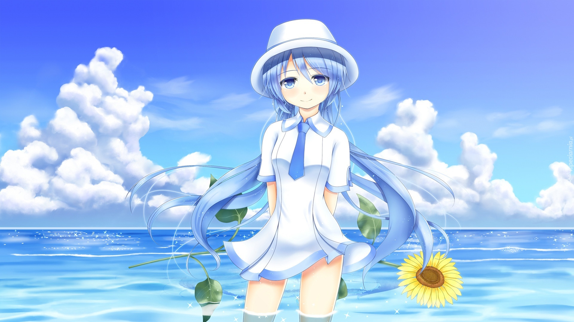 Edytor tapety: Dziewczyna, Kwiat, Niebo, Chmury, Morze, Manga, Anime