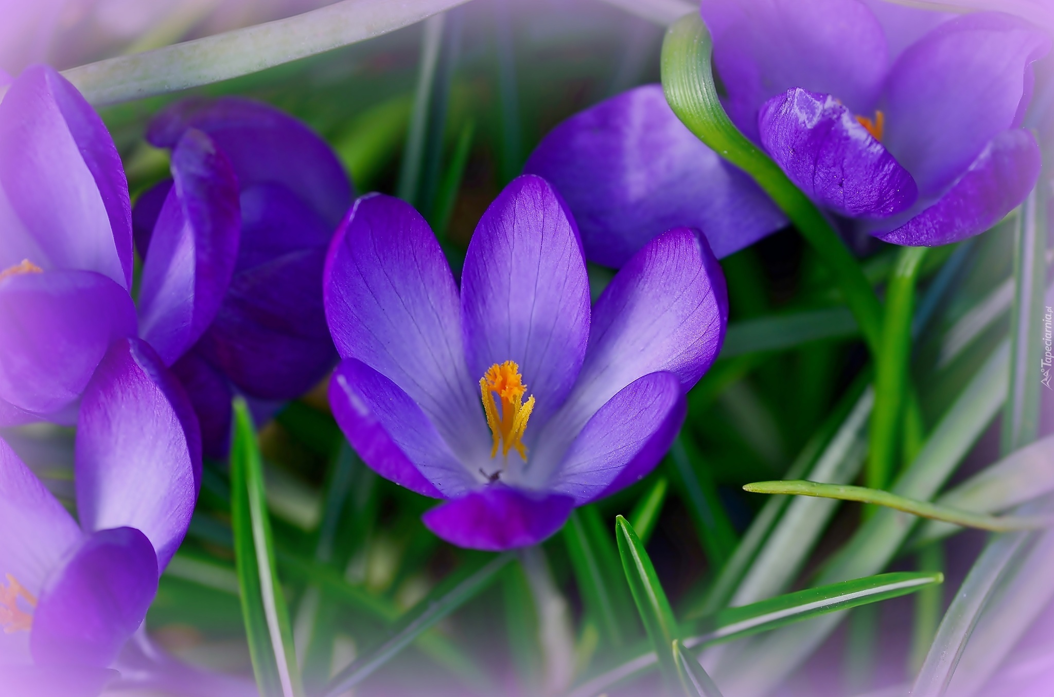 Edytor tapety: Krokusy, Trawka, Makro
