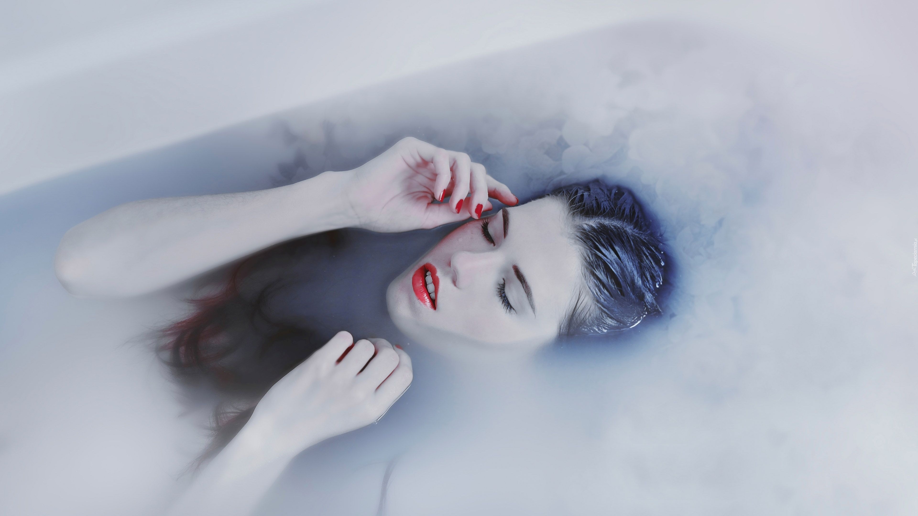 Edytor tapety: Brunetka, Woda, Opary