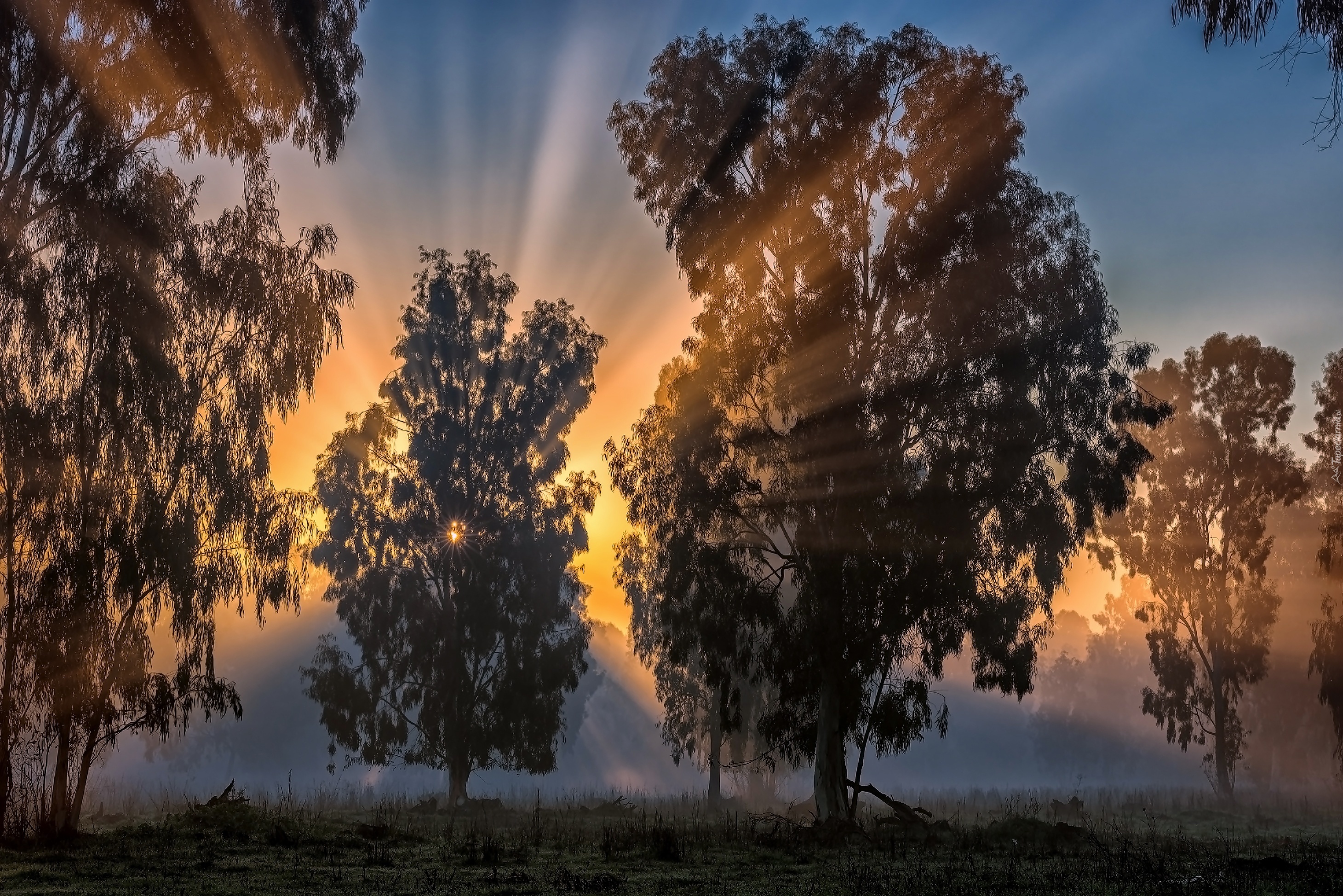 Edytor tapety: Drzewa, Promienie, Słońca