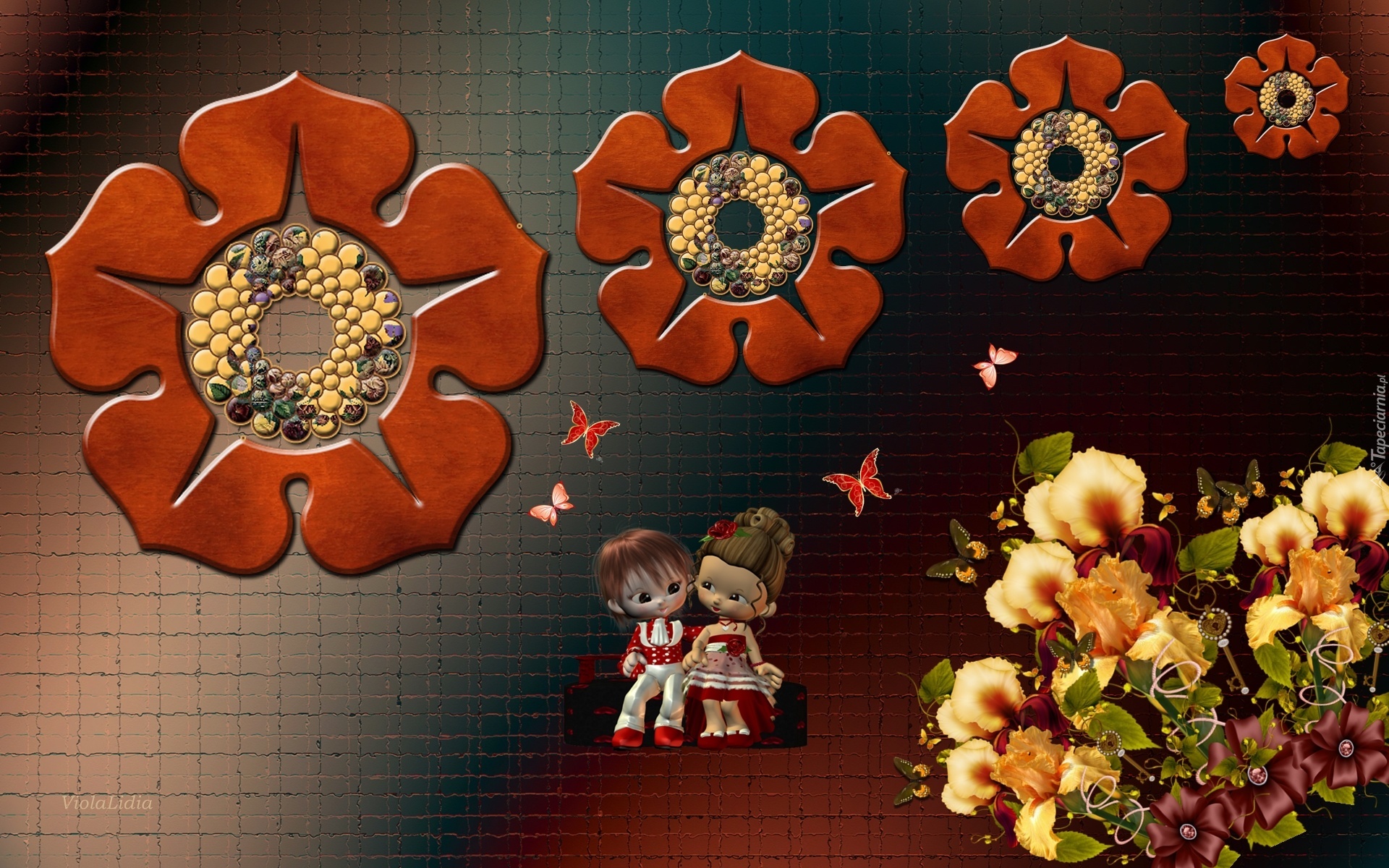 Edytor tapety: Grafika, Kwiaty, Laleczki, Motylki
