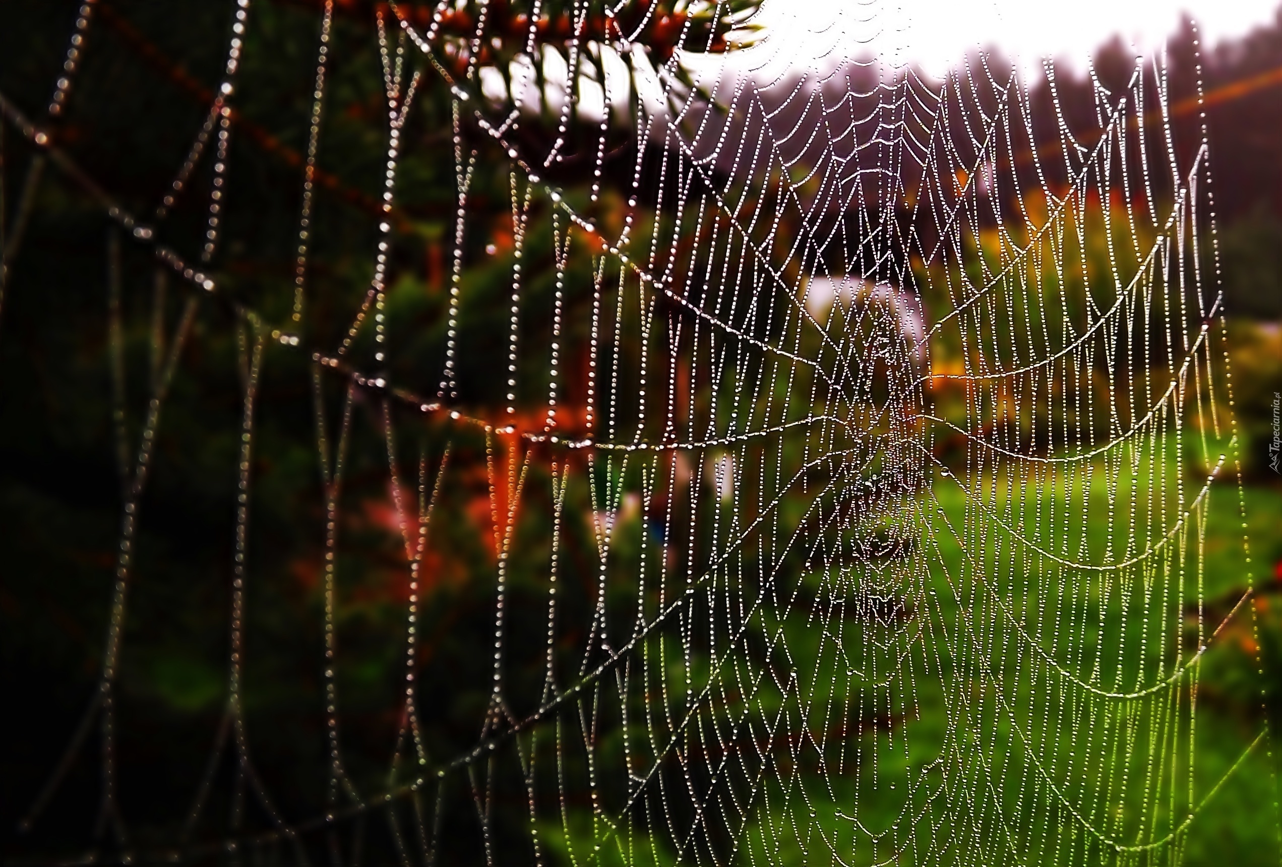 Edytor tapety: Pajęczyna, Krople, Wody, Rosa