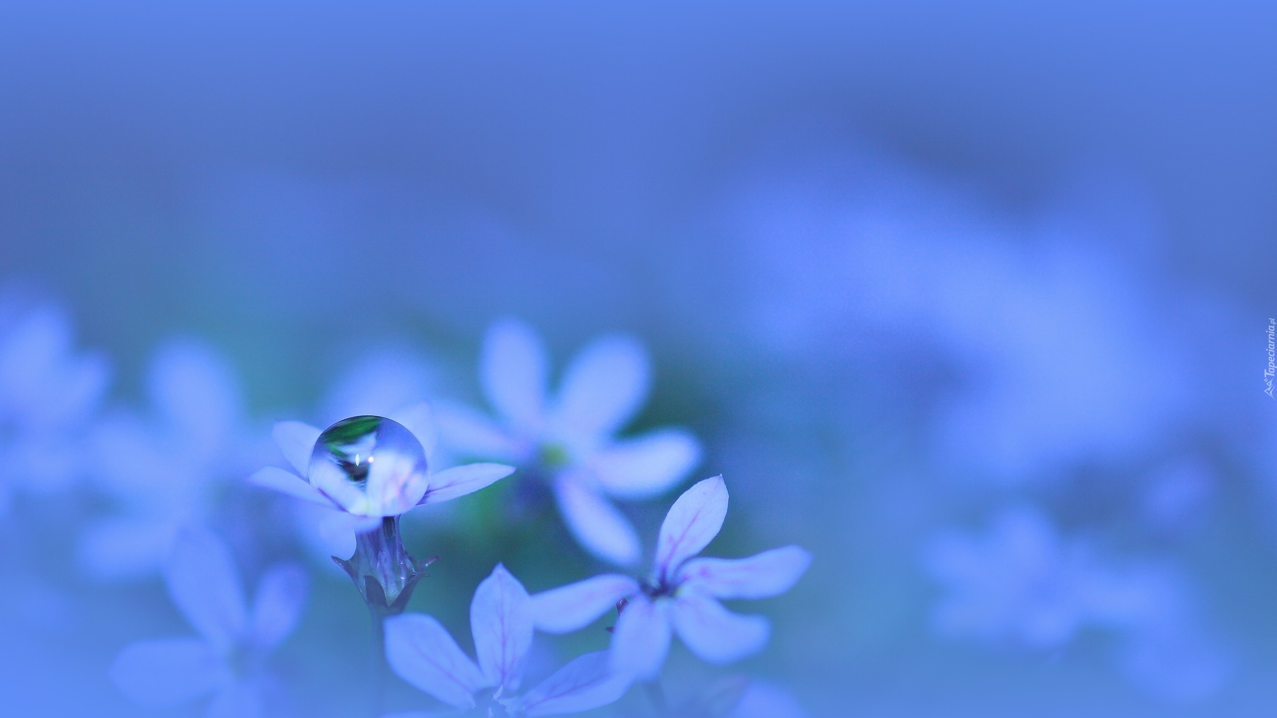 Edytor tapety: Kwiat, Kropla, Tło, Niebieskie, Rozmyte, Makro