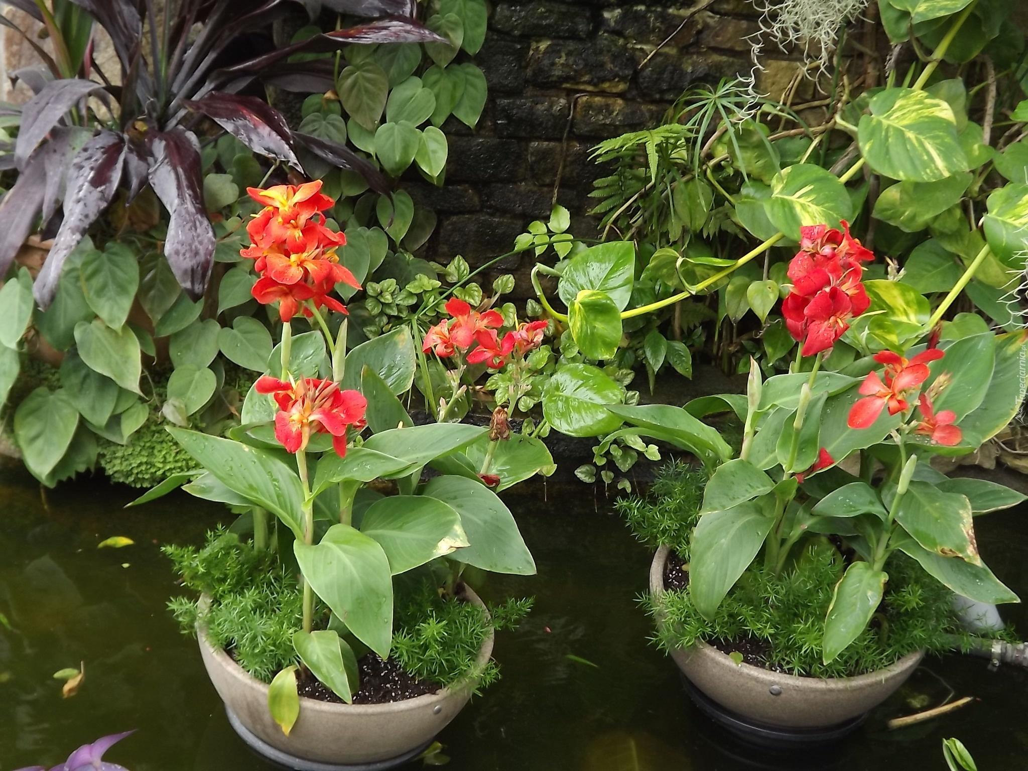 Edytor tapety: Ogród Botaniczny, Staw, Kwiaty, Liście