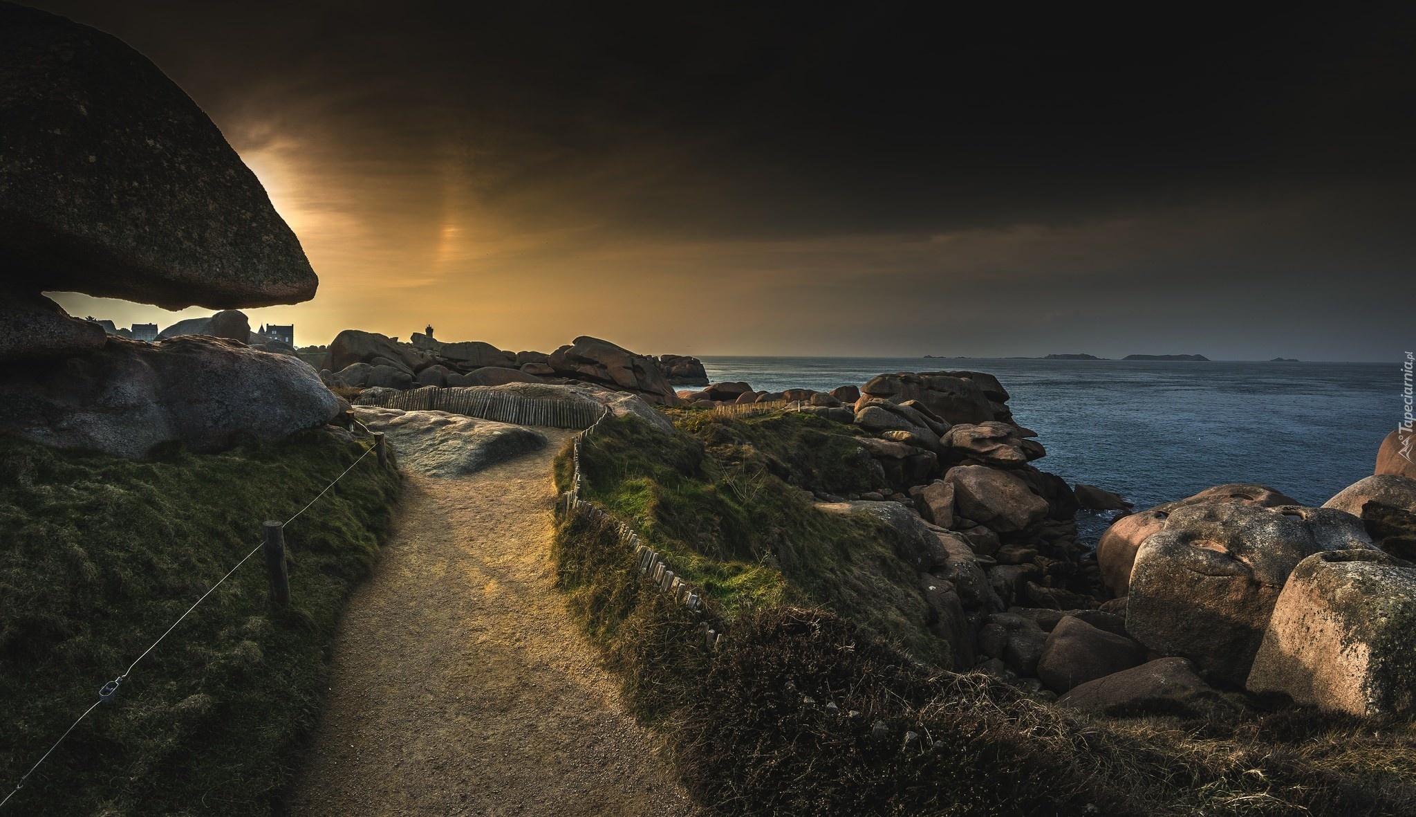 Edytor tapety: Morze, Skały, Droga, Promienie, Słońca