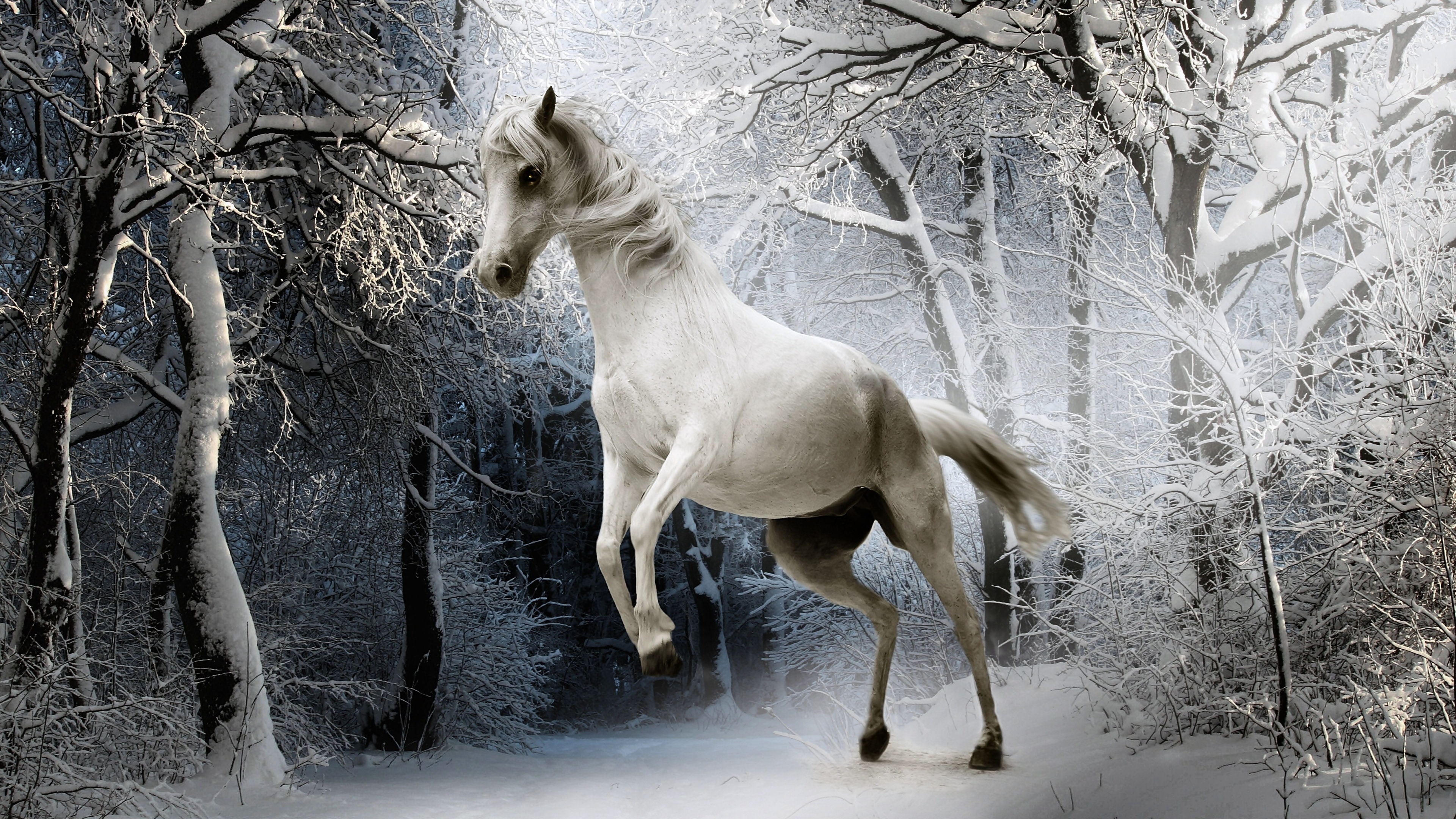 Edytor tapety: Biały, Koń, Zima, Las