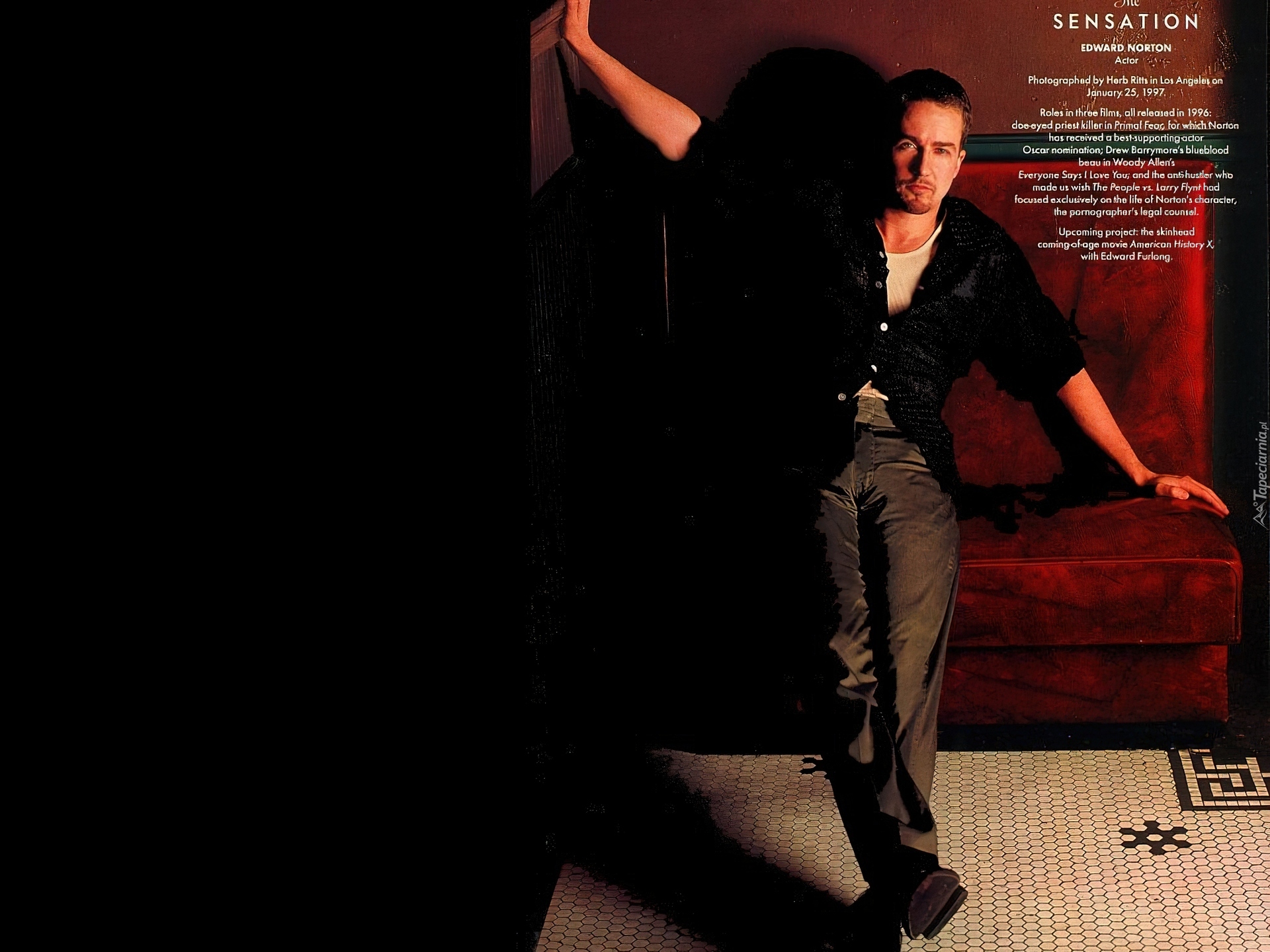 Edytor tapety: Edward Norton,czarna koszula, fotel