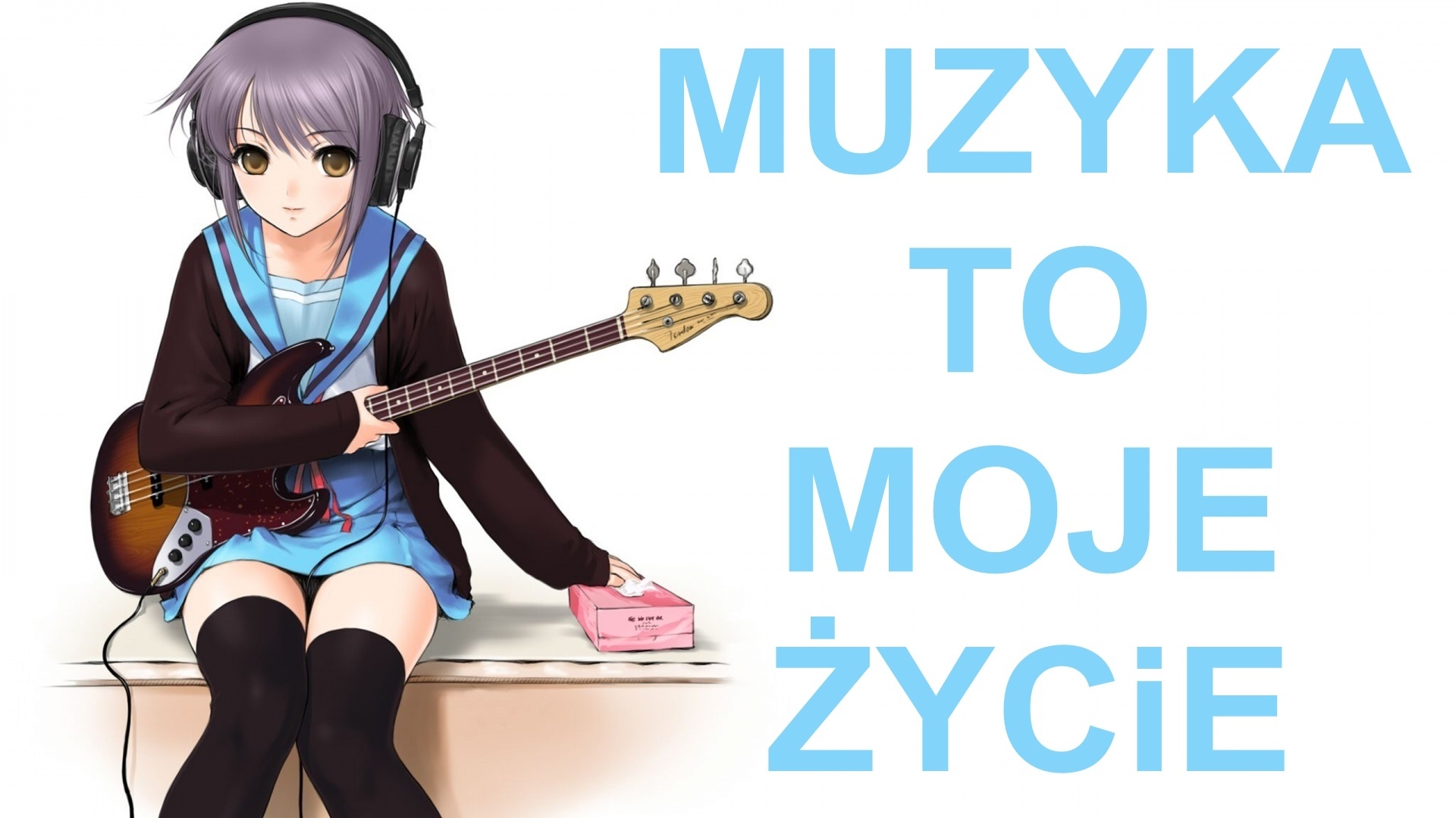 Edytor tapety: Dziewczyna, Słuchawki, Gitara, Napis, Manga, Anime
