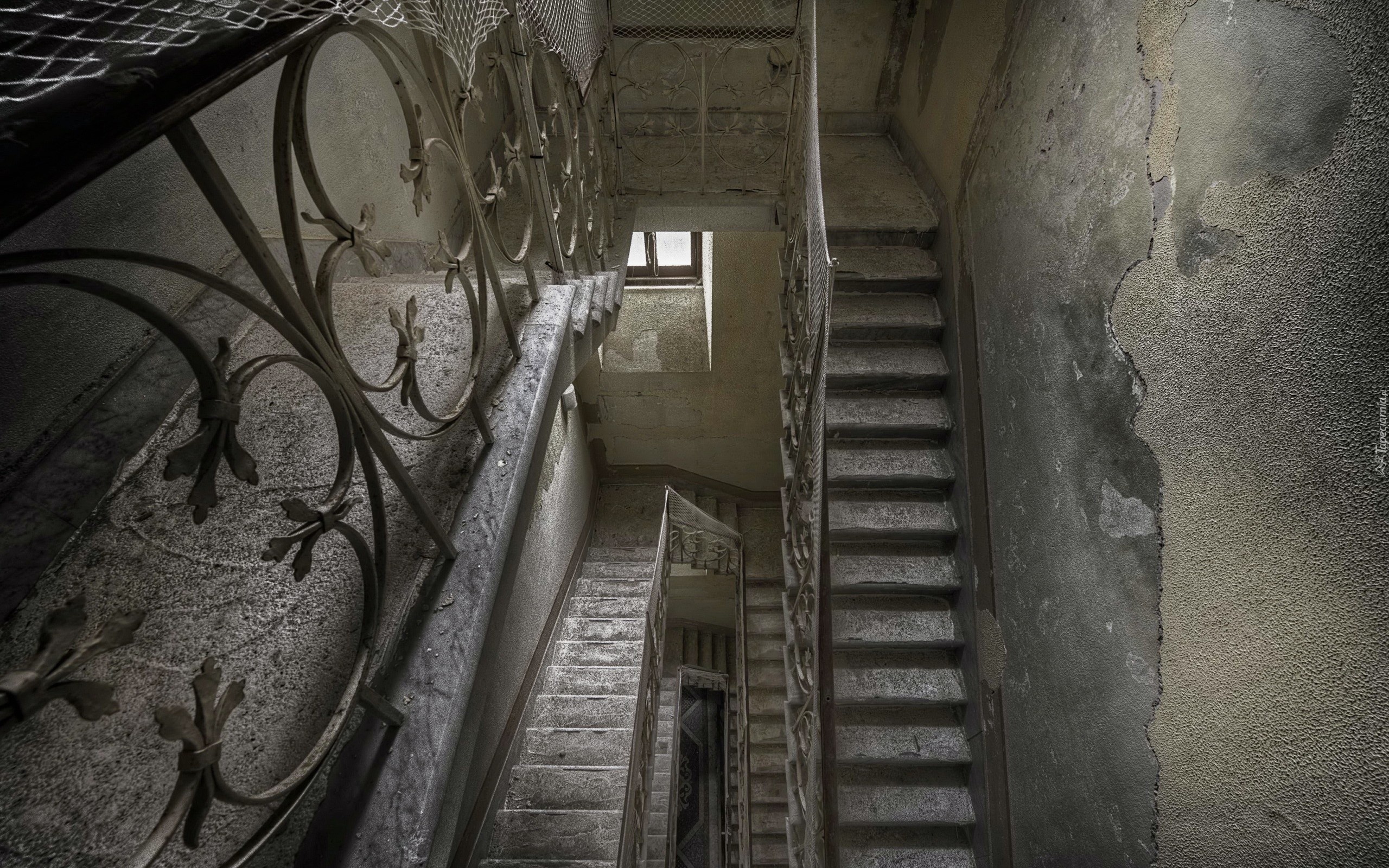 Edytor tapety: Zaniedbana, Klatka, Schodowa, Stare, Schody, Balustrada