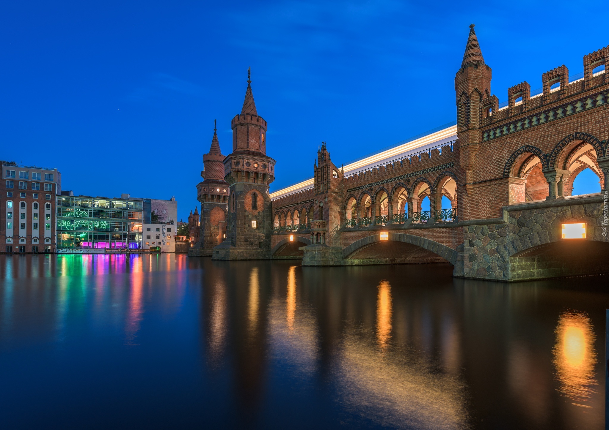 Edytor tapety: Niemcy, Berlin, Most, Rzeka, Budynki ,Noc