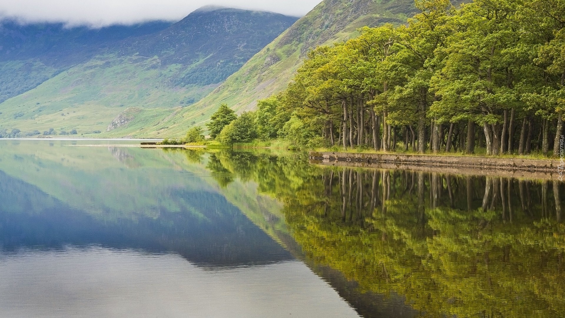 Edytor tapety: Jezioro, Las, Góry, Chmury