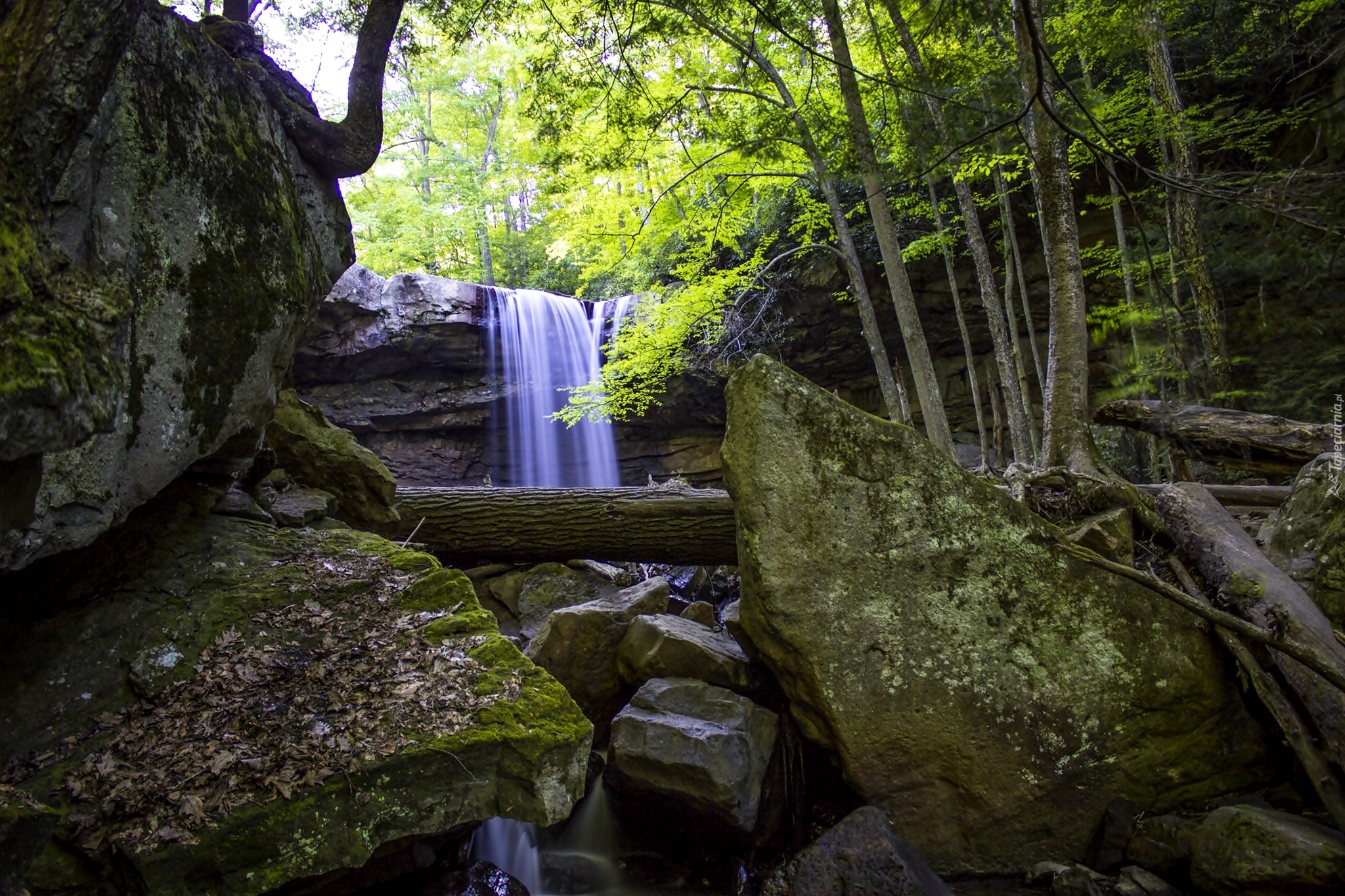 Edytor tapety: Las, Drzewa, Kamienie, Wodospad
