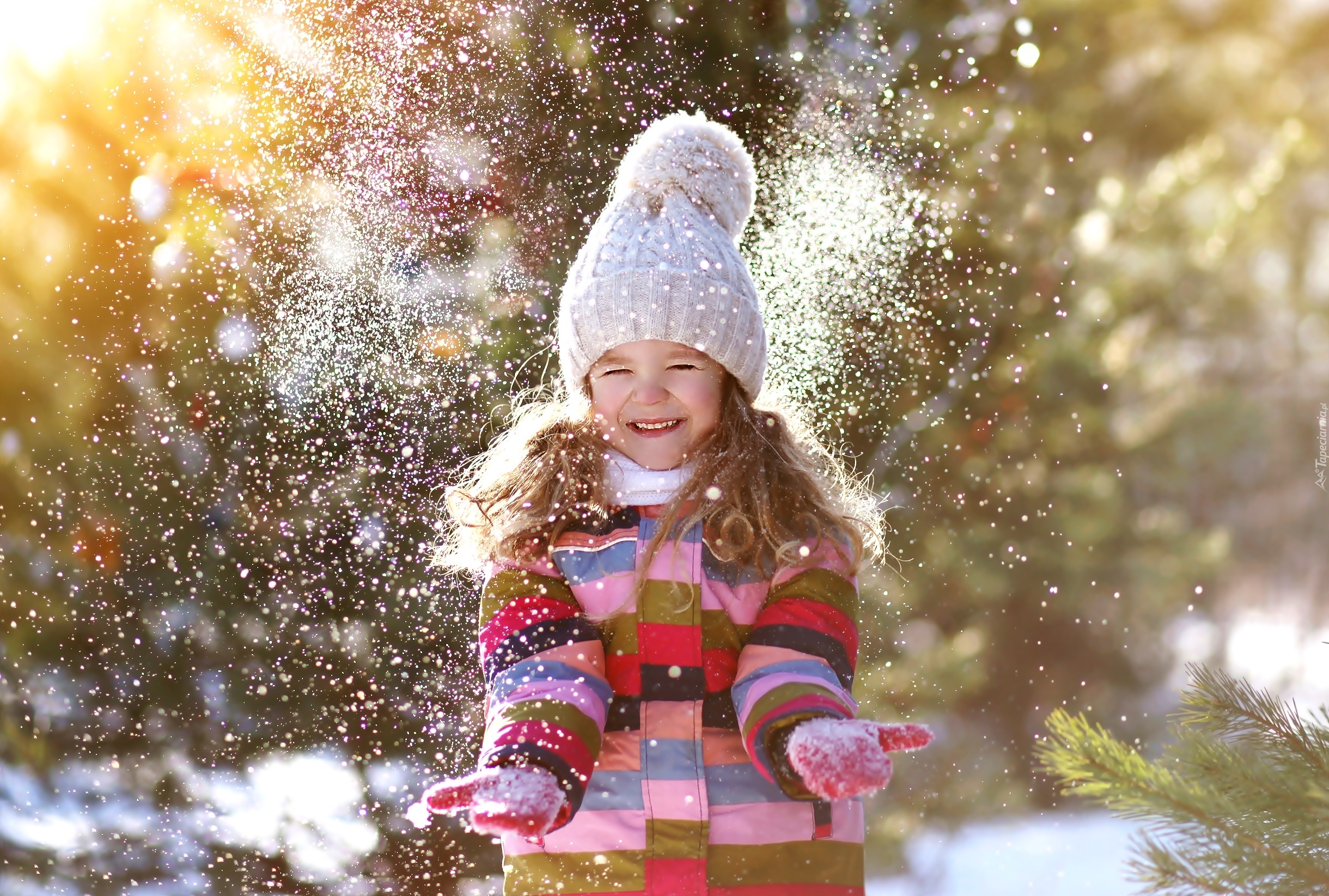 Edytor tapety: Dziewczynka, Zima, Padający, Śnieg, Czapka, Rękawice