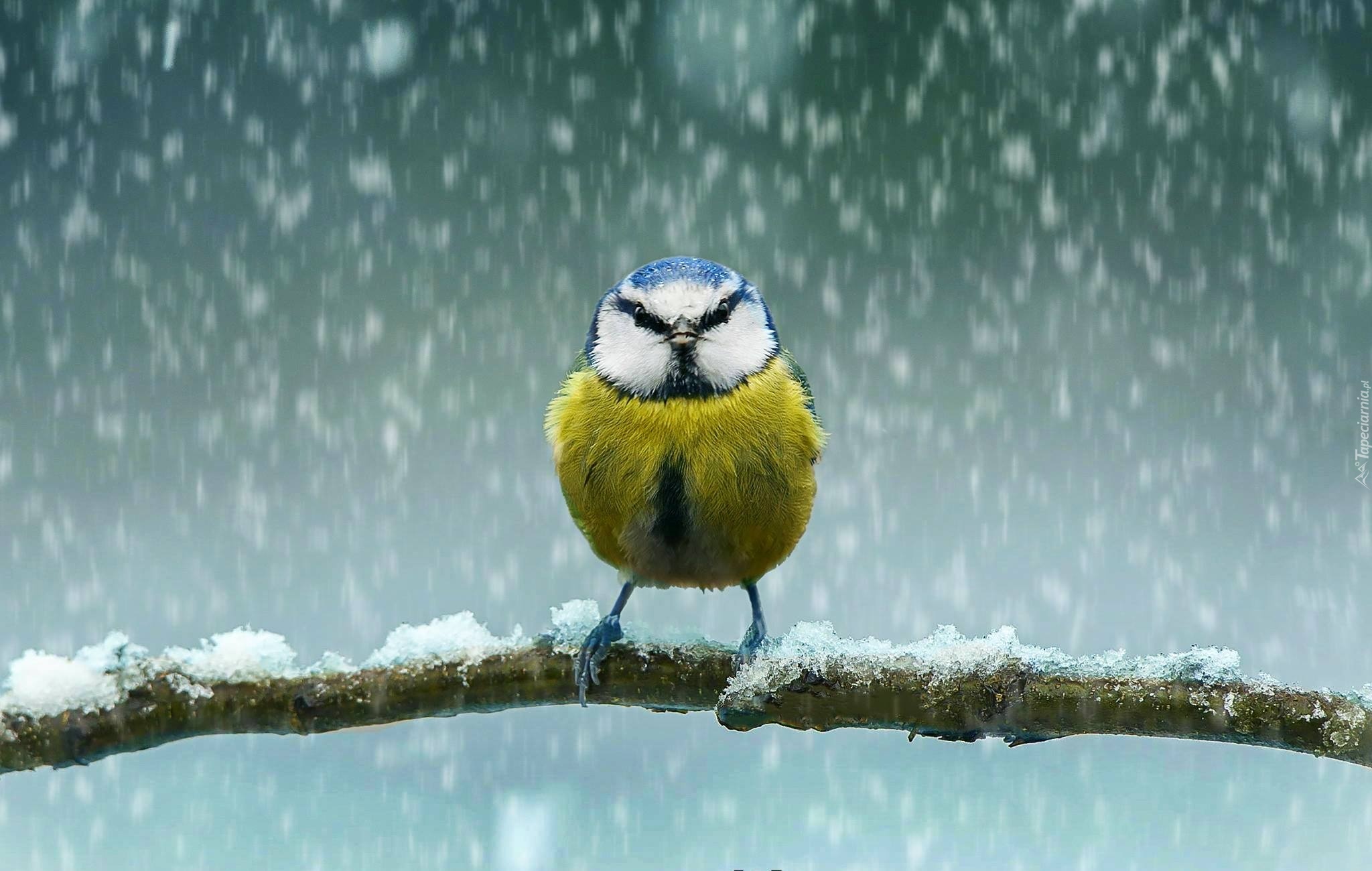 Edytor tapety: Sikorka, Gałązka, Śnieg