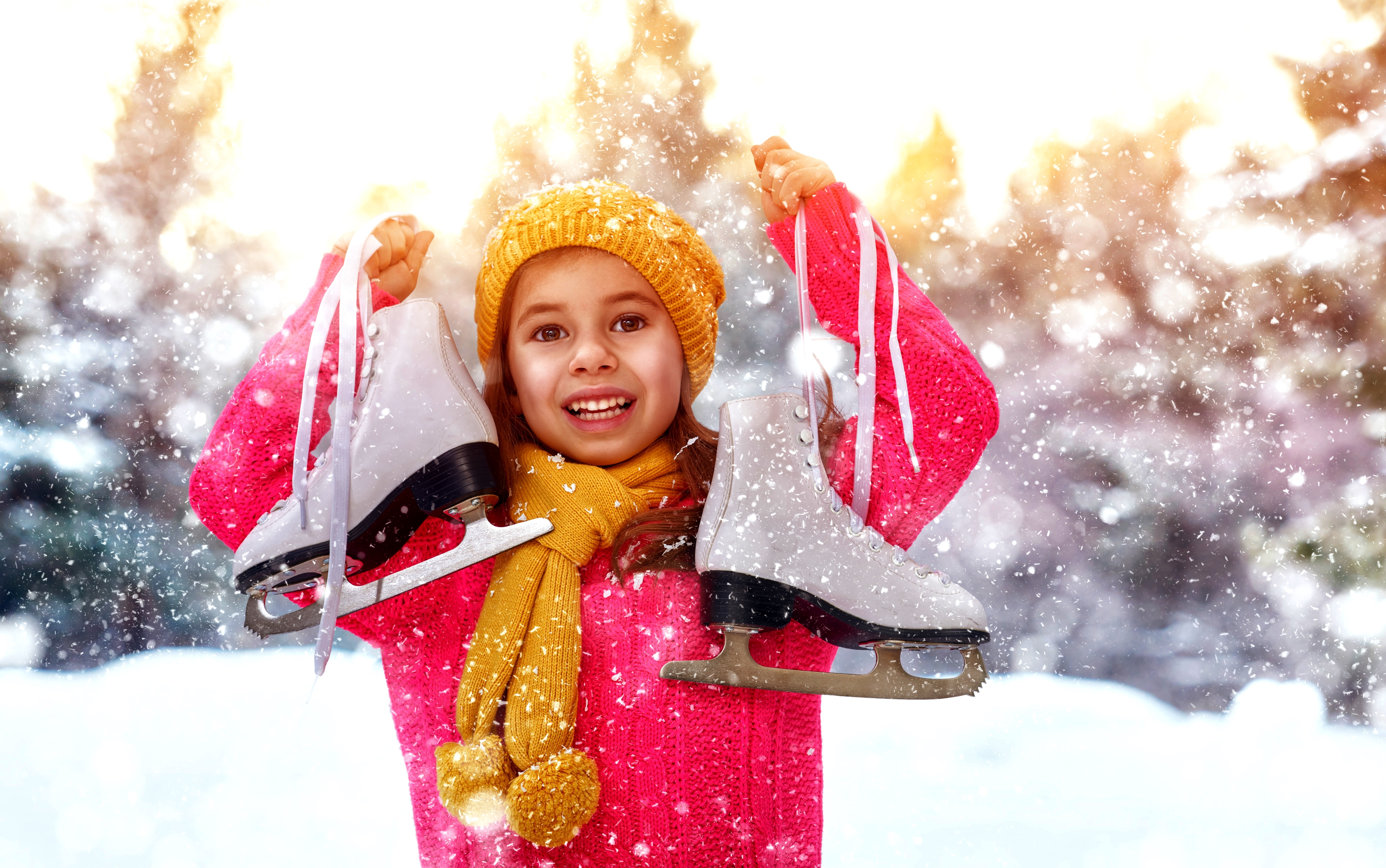 Edytor tapety: Zima, Dziewczynka, Łyżwy ,Śnieg