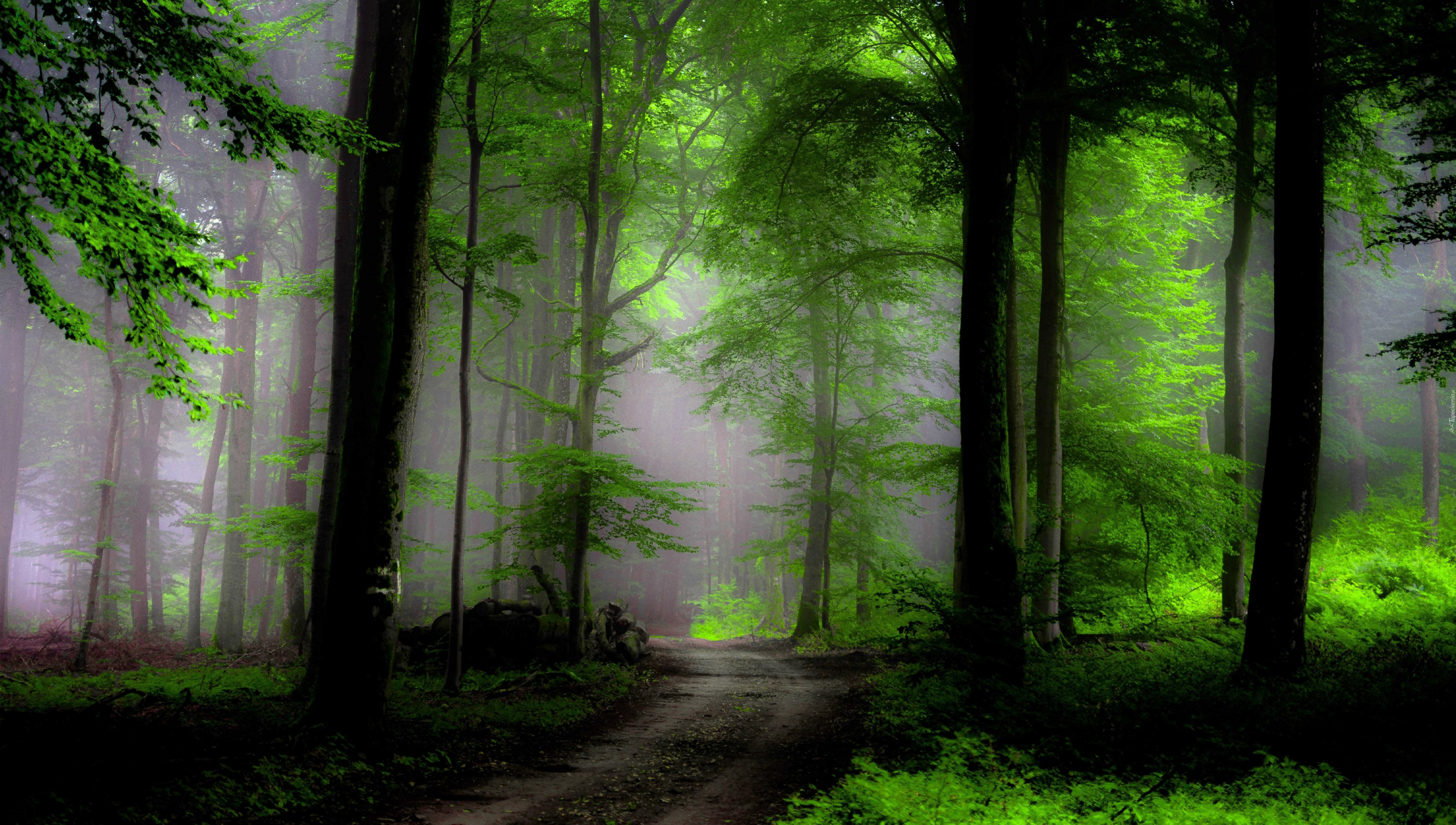 Edytor tapety: Las, Droga, Mgła