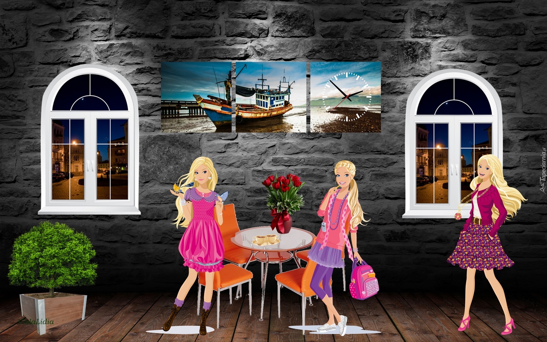 Edytor tapety: Grafika, Wnętrze, Kawiarenka, Dziewczyny